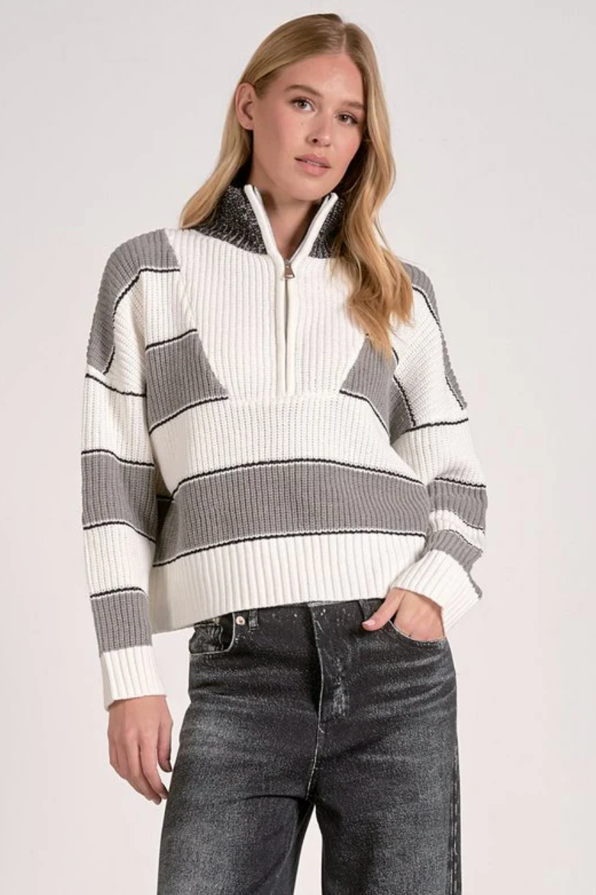 Quarter Zip Stripe Sweater