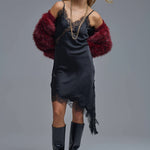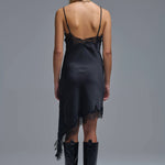 Step into the spotlight with our exquisite asymmetrical black satin lace dress. This stunning piece features a chic midi length that gracefully drapes to create a flattering silhouette. The adjustable straps allow for a customizable fit ensuring you feel comfortable and confident all night long. The intricate lace detailing adds a touch of sophistication making this dress an ideal choice for any holiday party or special event!