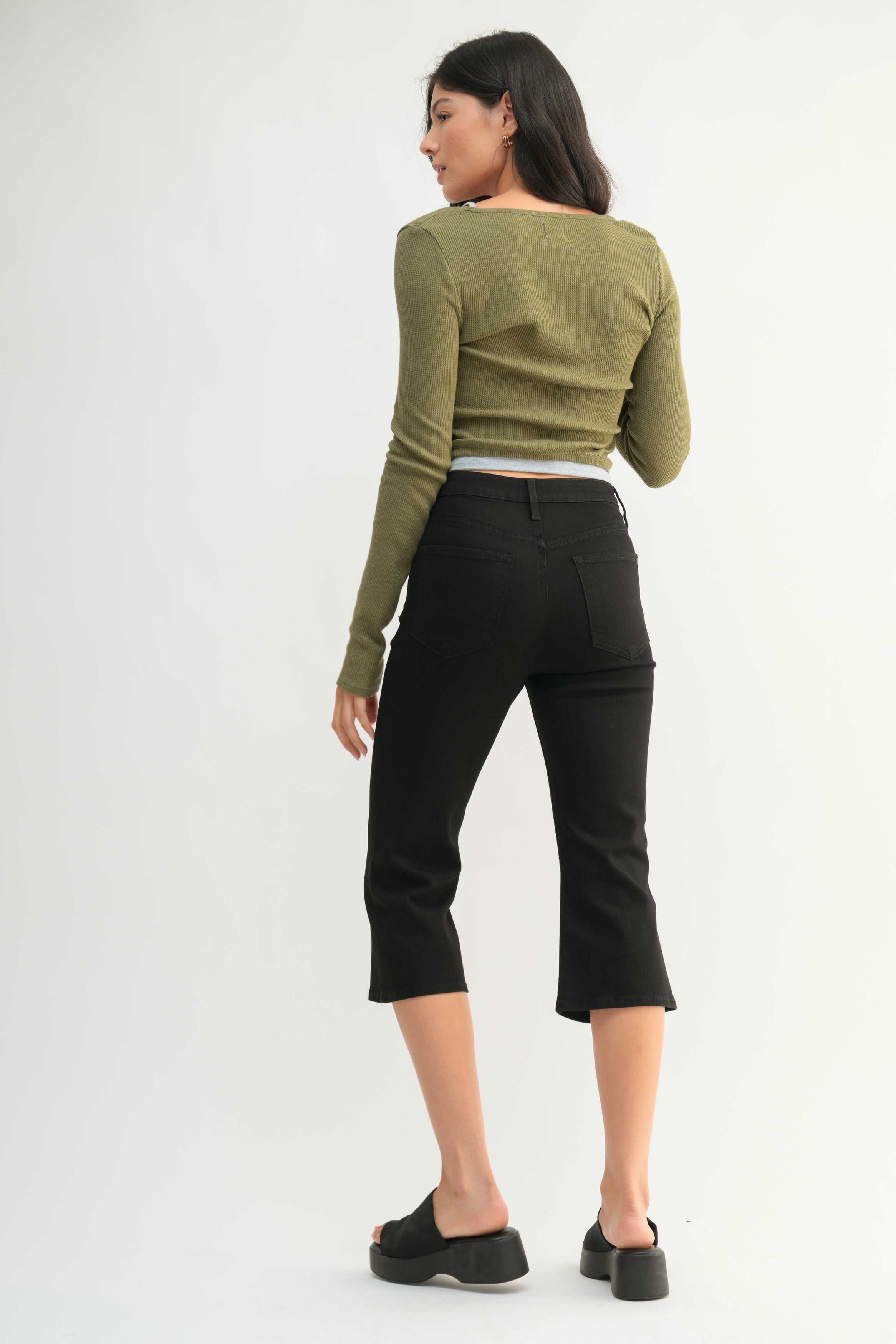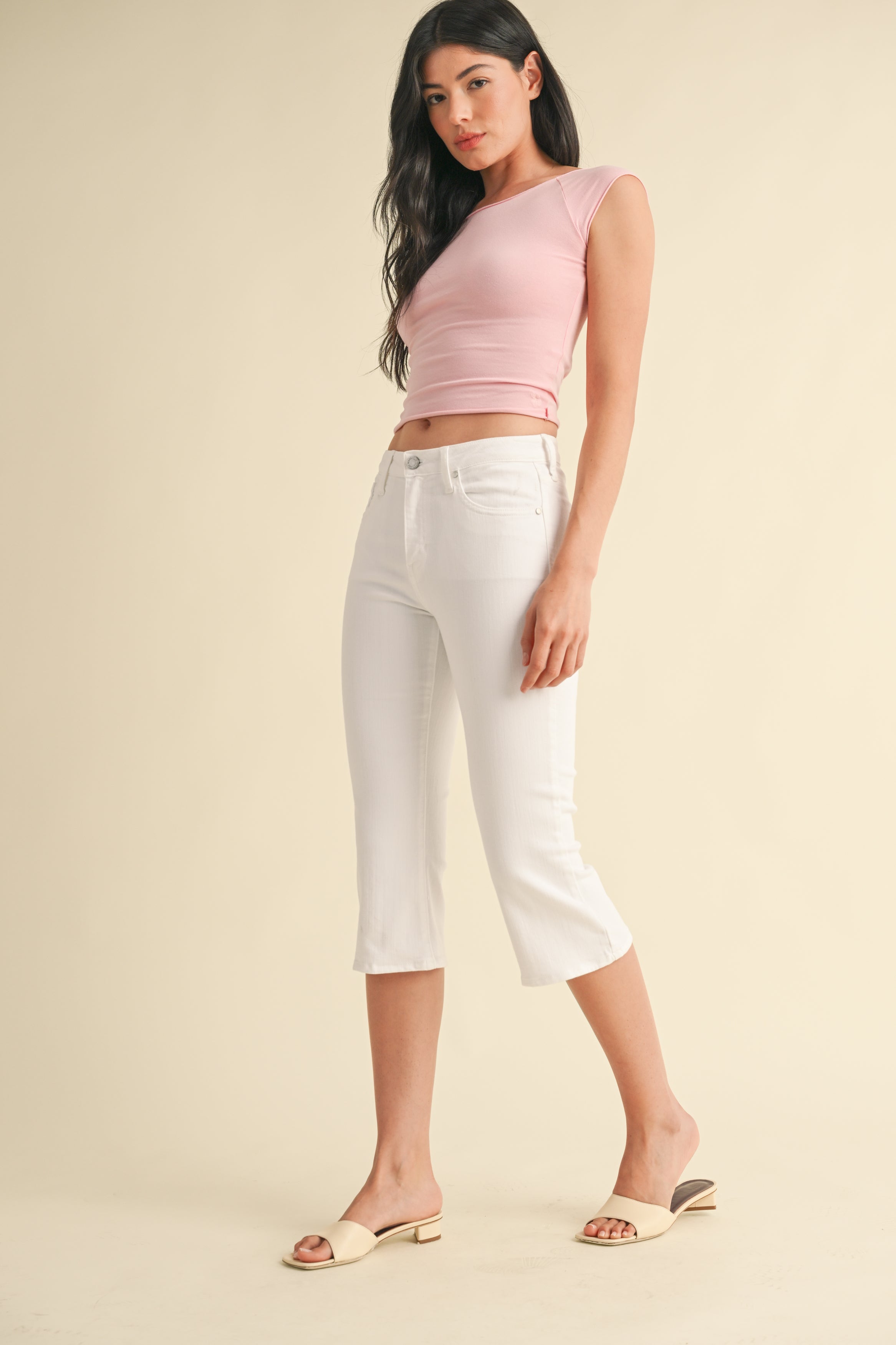 Designed to hit just below the knee, these capris offer a flattering and breathable fit. Ideal for warmer weather or casual outings, they feature a mid-rise waist that sits comfortably on the hips. Made from soft, slightly stretchy denim, they ensure all-day comfort while keeping their shape intact!