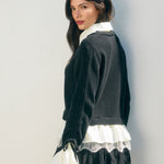 Elevate your wardrobe with this Collared Layered Sweater featuring a delicate lace bottom. The classic collar adds a polished touch, while the layered design offers stylish dimension. Perfect for transitioning between seasons, this sweater provides feminine elegance, making it an ideal choice for both casual outings and dressier occasions!