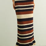 Color block knit skirt with a playful ruffle hem. Contrasting panels create a modern look, while soft knit fabric delivers all-day comfort. Versatile enough for office or weekend wear.