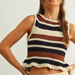 Make a bold statement with this color block top featuring contrasting panels and a playful ruffle hem. The modern design pairs effortlessly with jeans or skirts for any occasion. A versatile essential that brings style and movement to your wardrobe.