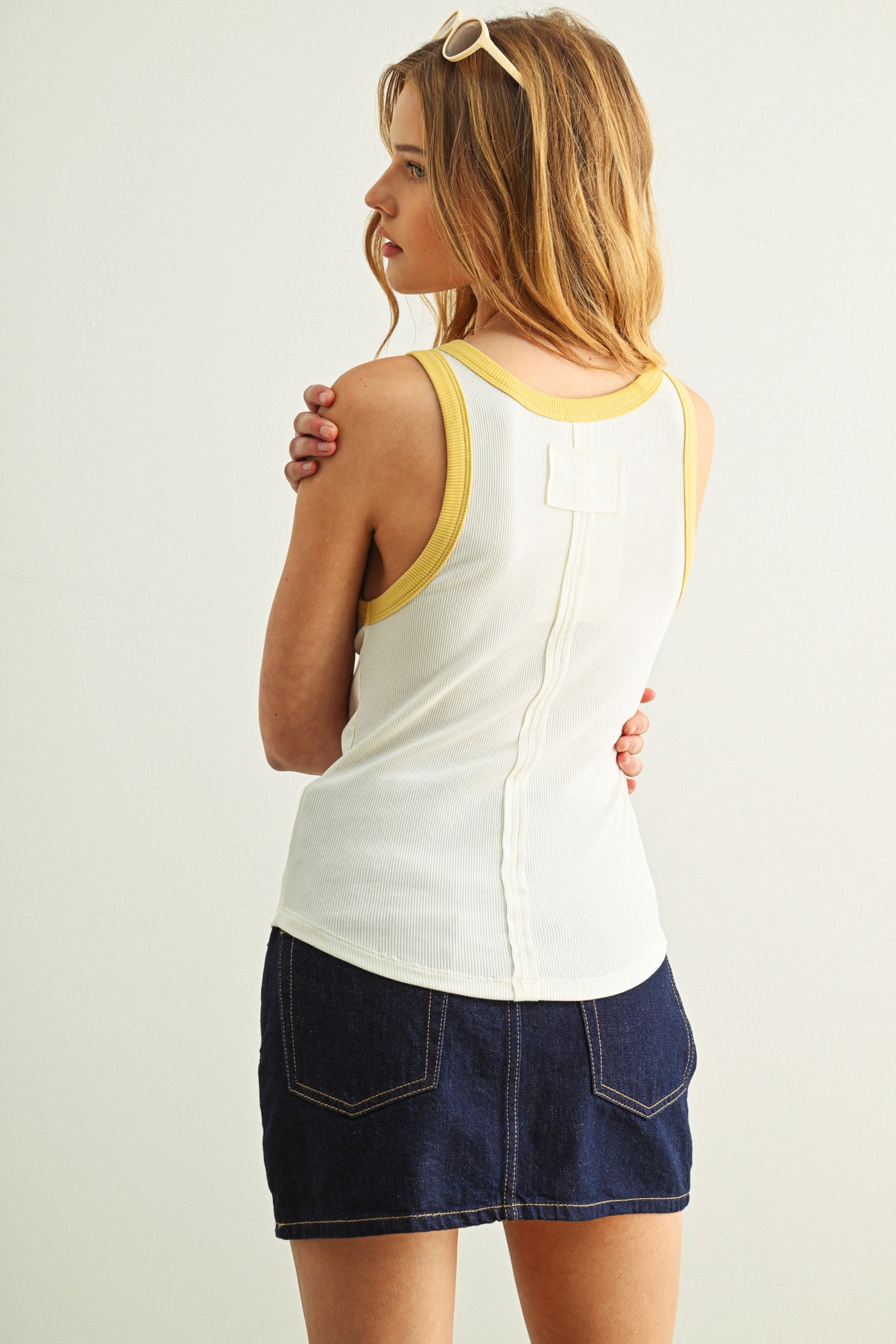 Elevate your everyday wardrobe with this versatile Color Contrasted Tank Top. The striking color blocking creates instant visual interest while the classic tank silhouette keeps things effortlessly chic. Perfect as a standalone piece or layered under your favorite jacket, this essential basic works harder than it looks. Comfortable, stylish, and endlessly wearable—the foundation piece every closet needs!