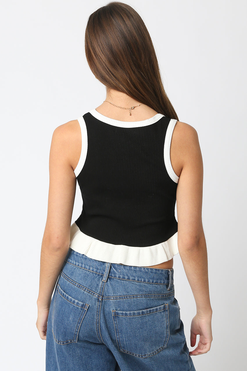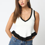 Contrast Pleated Hem Tank