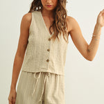 Textured crinkle fabric with a relaxed, effortless vibe. Button front closure for easy layering and styling. Lightweight and breathable—perfect for any season. Pair with jeans, trousers, or skirts for a polished casual look.