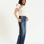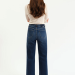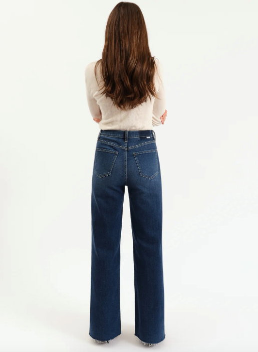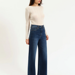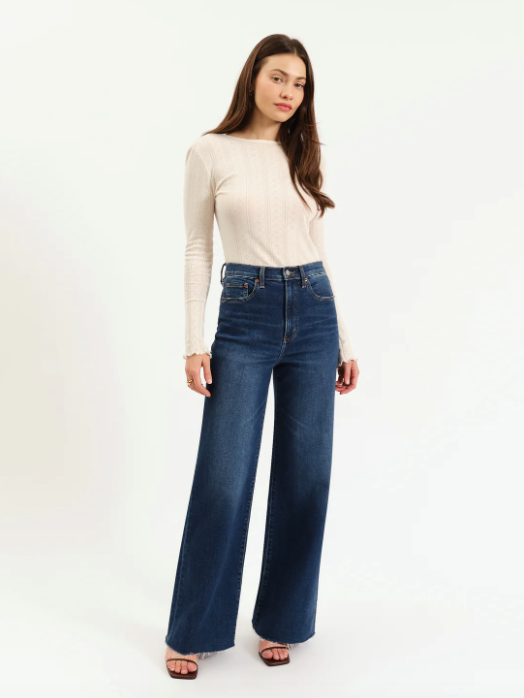 The cool girl jean, High Rise Wide Leg is a modern silhouette with twisted seams across the fit to give the appearance of longer legs. In a waist defining high rise, this wide leg is constructed in our "hug" denim that hugs your body, but has just enough weight to keep a structured fit.