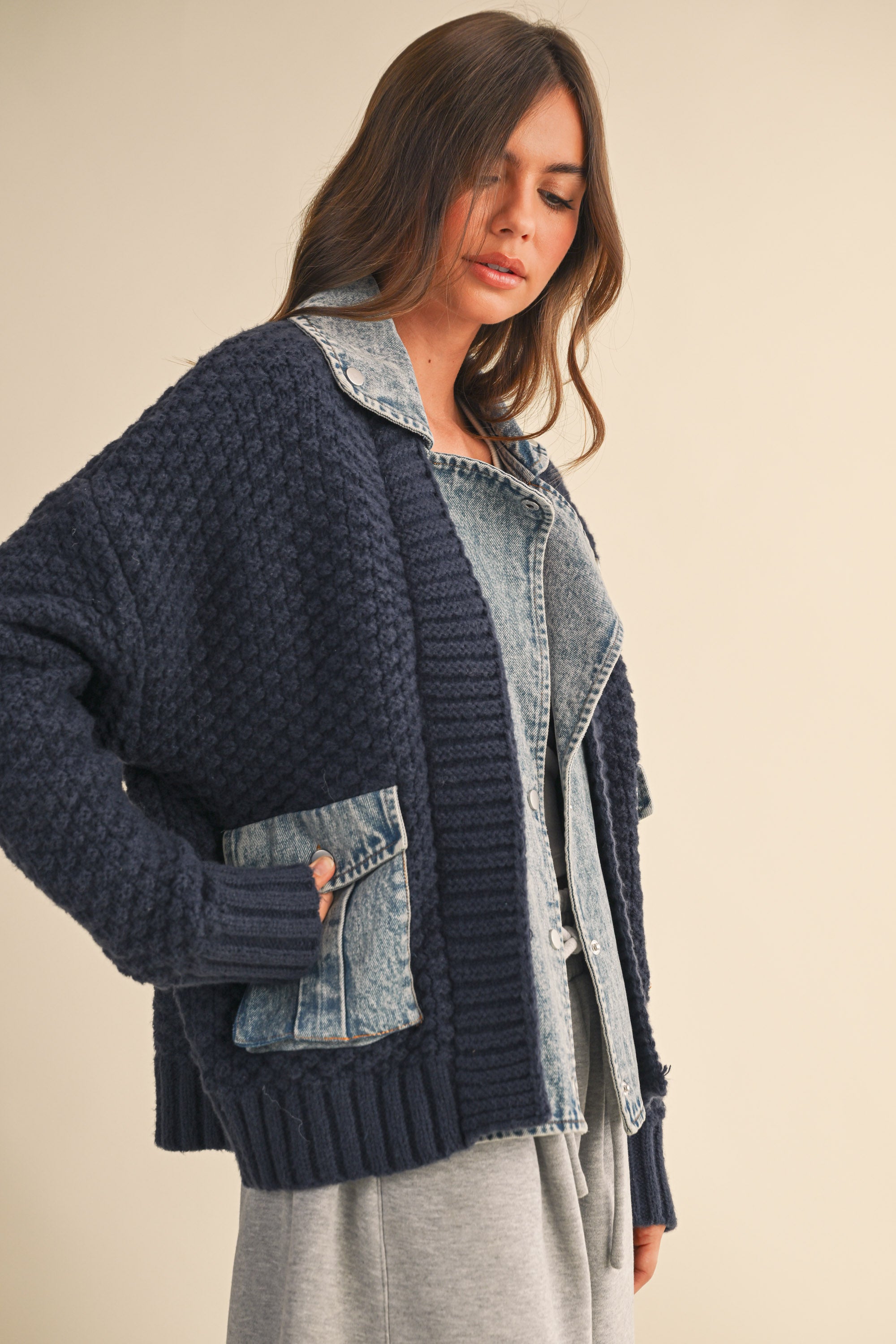 Denim Contrast Sweater Jacket
