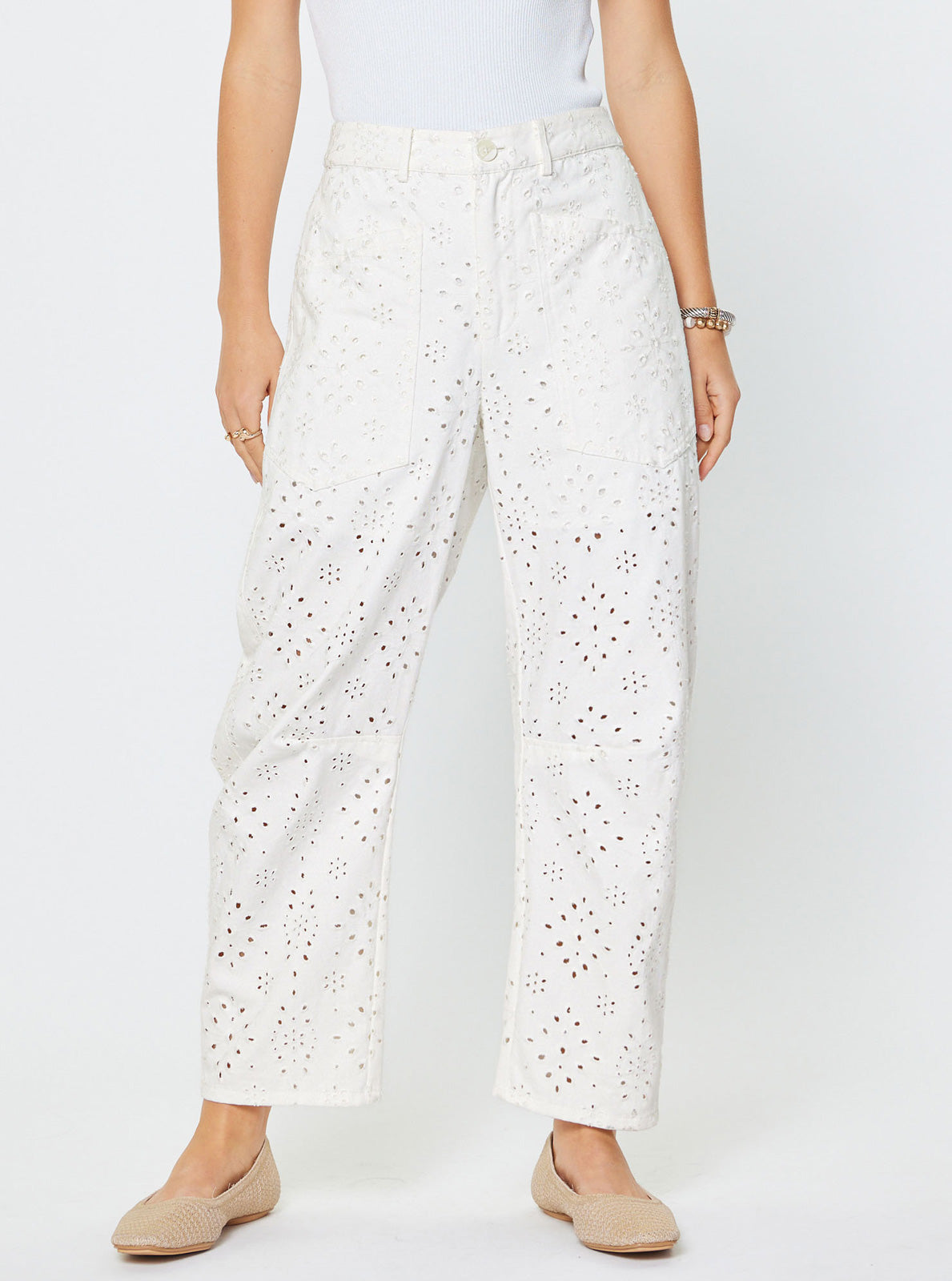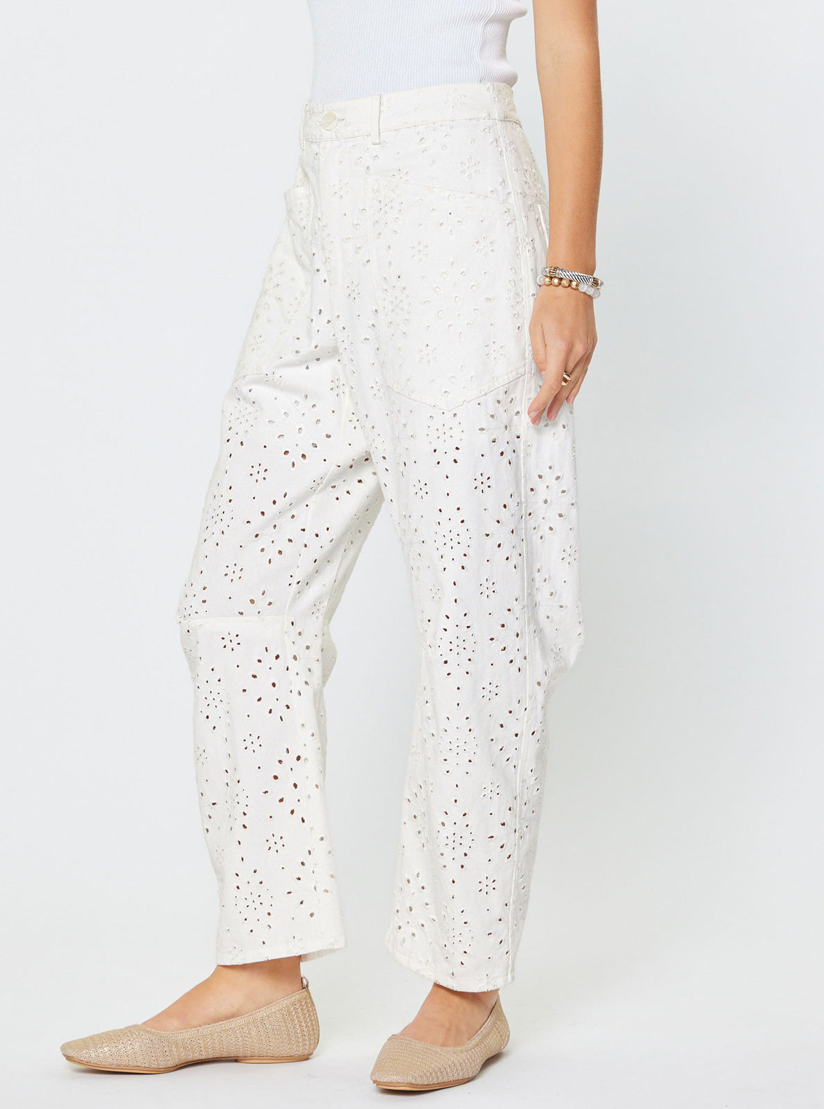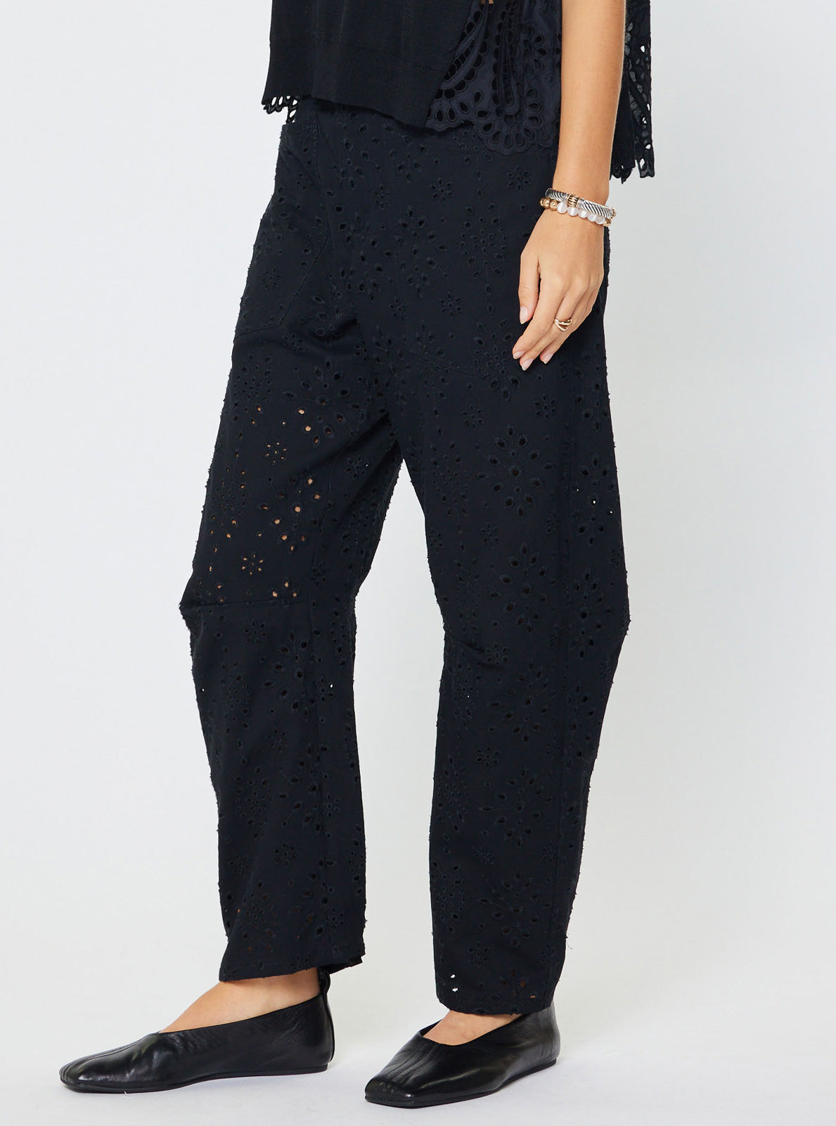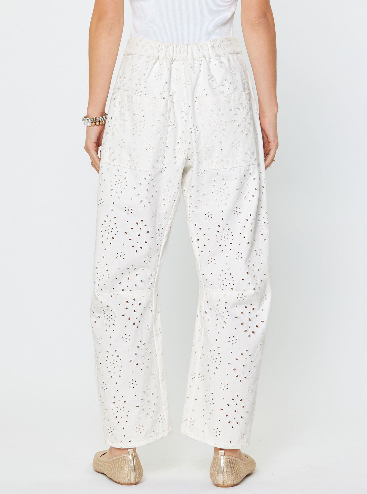 - Eyelet embroidery cotton pants