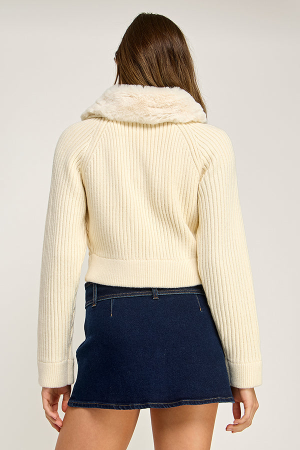Discover effortless elegance with this faux fur lapel knit cardigan. The plush collar adds a touch of glamour while the soft, breathable knit ensures all-day wearability. Style it with anything in your closet for an instant upgrade. Your new go-to layering piece awaits!