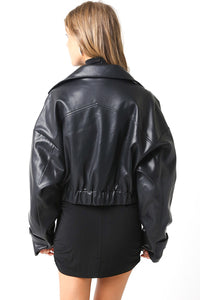 Elevate your style effortlessly with this Faux Leather Bomber Jacket. Perfect for layering, it adds edge to any outfit! A timeless addition to your wardrobe that balances fashion and function seamlessly!