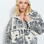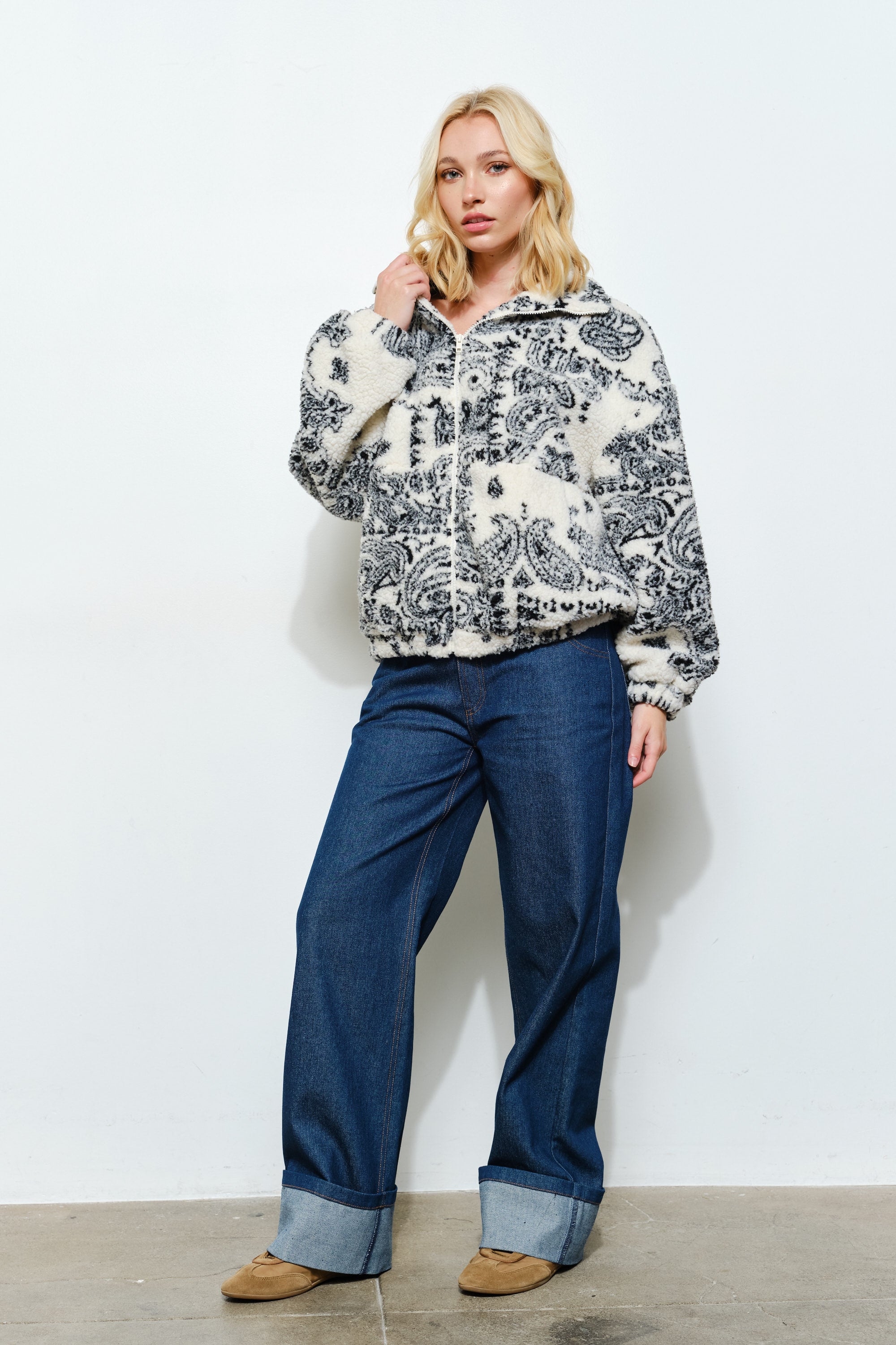 Cozy up in effortless style with this fleece zip-up featuring a timeless paisley pattern. Perfect for layering or wearing solo, it delivers warmth without the bulk. The convenient zip closure makes it easy to adjust your comfort level throughout the day. A versatile essential that works with everything in your wardrobe!