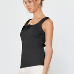 Floral Applique Square Neck Knit Tank Top