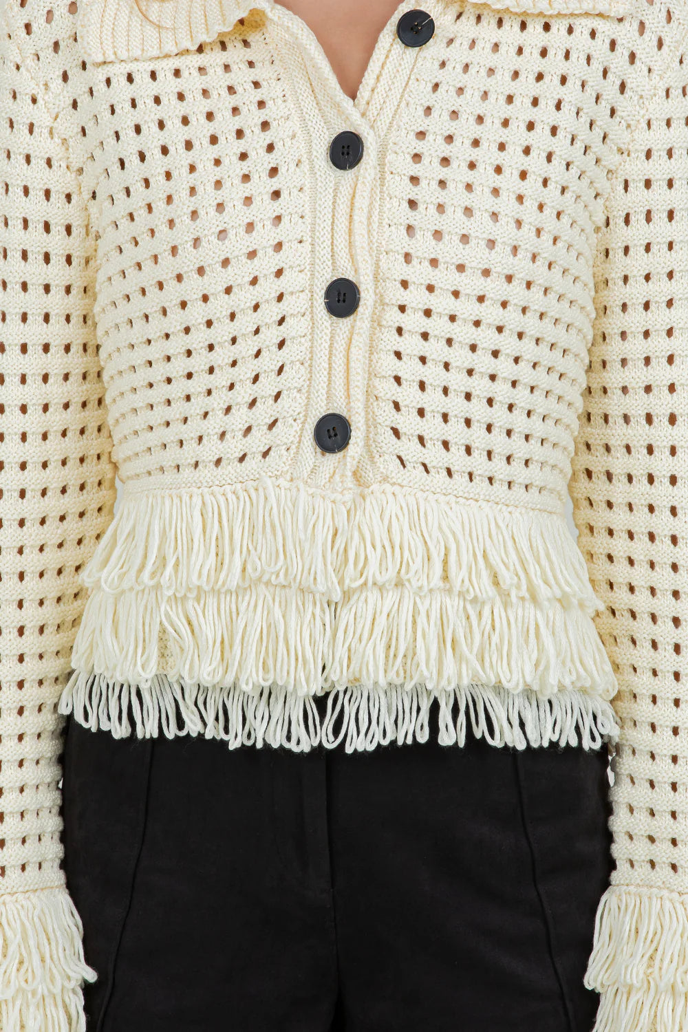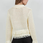 Elevate your wardrobe with the Fringe Detail Button Down Cardigan, designed to blend classic comfort with a stylish twist. Featuring delicate fringe accents and easy-to-use buttons, this cardigan adds texture and charm to any outfit. Perfect for layering, it offers warmth without sacrificing style, making it an essential piece for transitional seasons!