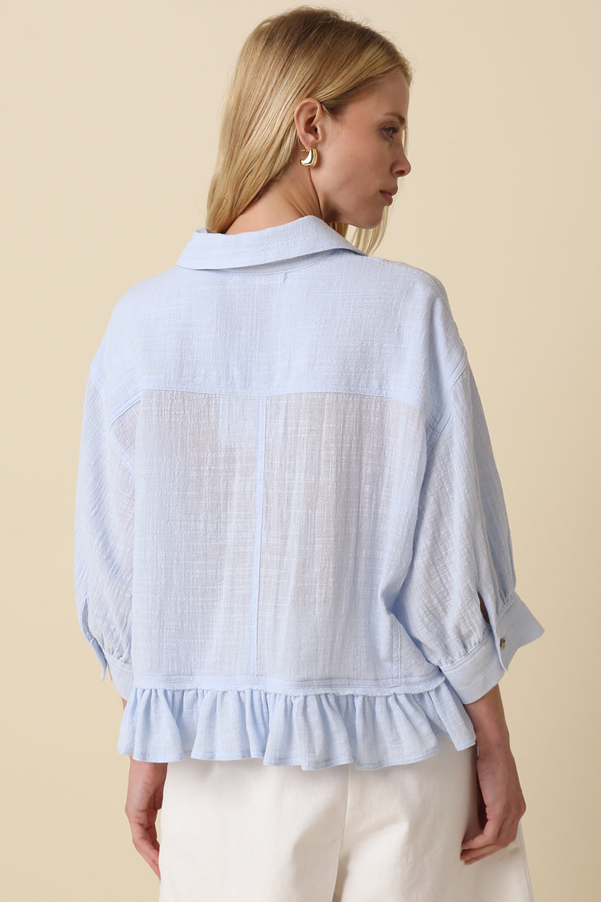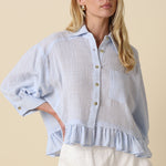 Gauze Button Down Ruffle Bottom Top