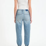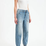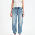 The Champ in Wings is a high rise denim jogger featuring utility-inspired pockets and a tapered, cinched ankle.