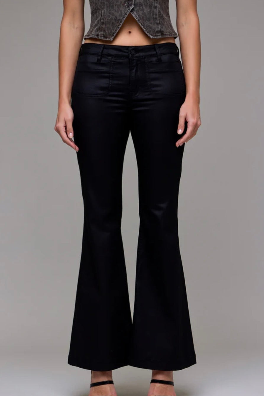 Discover effortless style with our Mid Rise Happy Flare jeans. Designed to flatter and comfort, these versatile bottoms feature a flattering mid-rise cut that sits perfectly at the hip, paired with a playful flare silhouette that elongates your legs. Perfect for dressing up or down, these jeans transition seamlessly from casual weekends to night-out ready. Crafted for all-day wear, they're the wardrobe essential that makes you feel confident and fabulous!