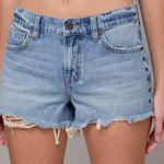 Effortless style meets comfort in this relaxed short, featuring eye-catching rivet embroidery detailing that sets it apart. The laid-back fit is perfect for casual days when you want to look put-together without trying too hard. A versatile wardrobe essential that transitions seamlessly from weekend hangouts to everyday wear!