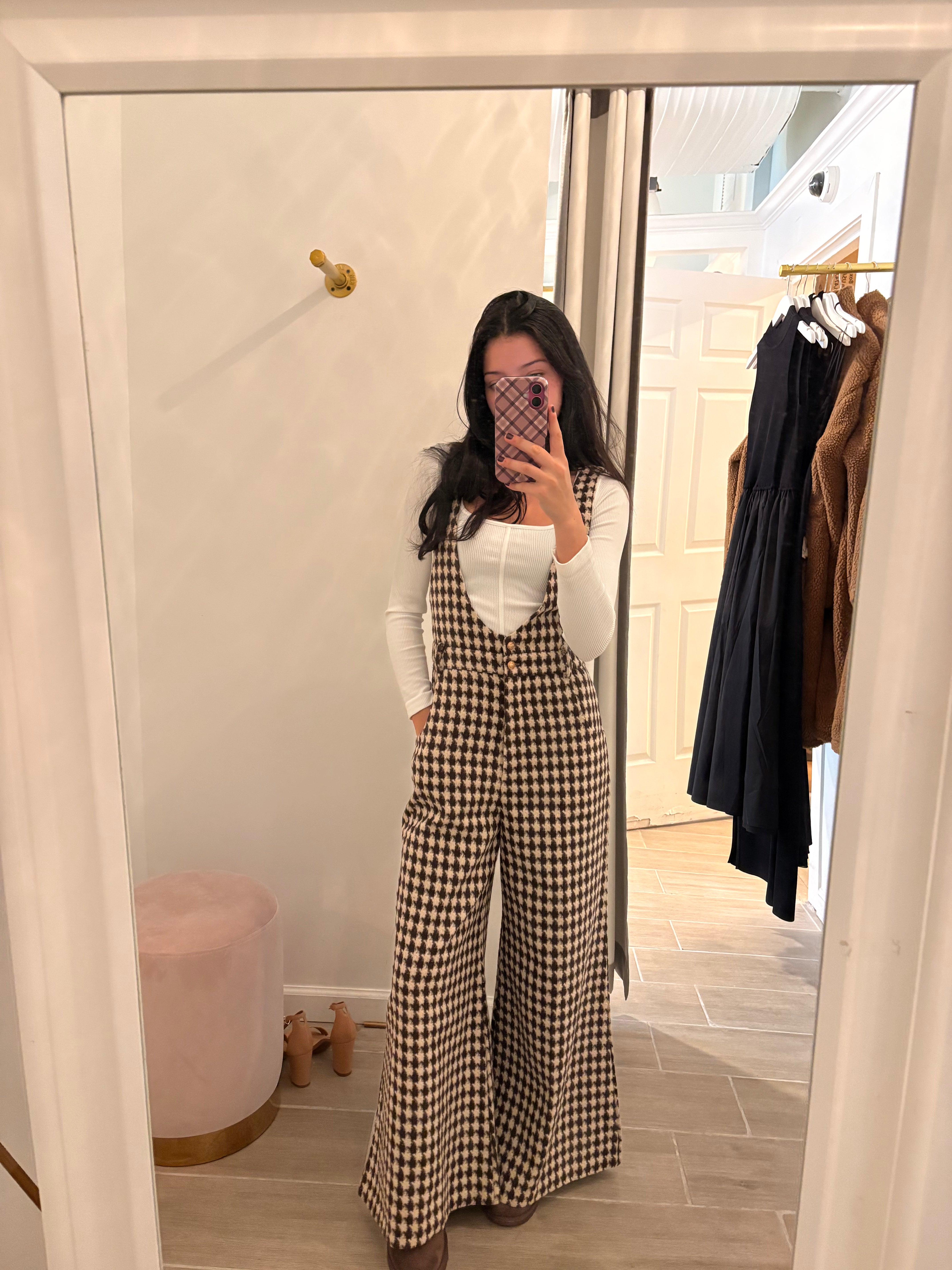 Step into timeless style with the Houndstooth Jumpsuit, a perfect blend of classic pattern and modern design. Crafted to flatter your silhouette, it offers effortless sophistication for any occasion. Whether at the office or out on the town, this jumpsuit ensures you stand out with confidence and ease. Elevate your wardrobe with a piece that combines comfort, chic appeal, and versatile wearability!