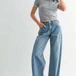 Classic denim meets modern edge. These baggy wide-leg jeans are cut from 100% cotton for a structured, authentic feel that holds its shape while softening over time. The relaxed fit through the hip and leg offers a laid-back, oversized look that’s effortlessly cool. Perfect for pairing with a fitted top or an oversized layer—this is your go-to jean for comfort, style, and attitude.