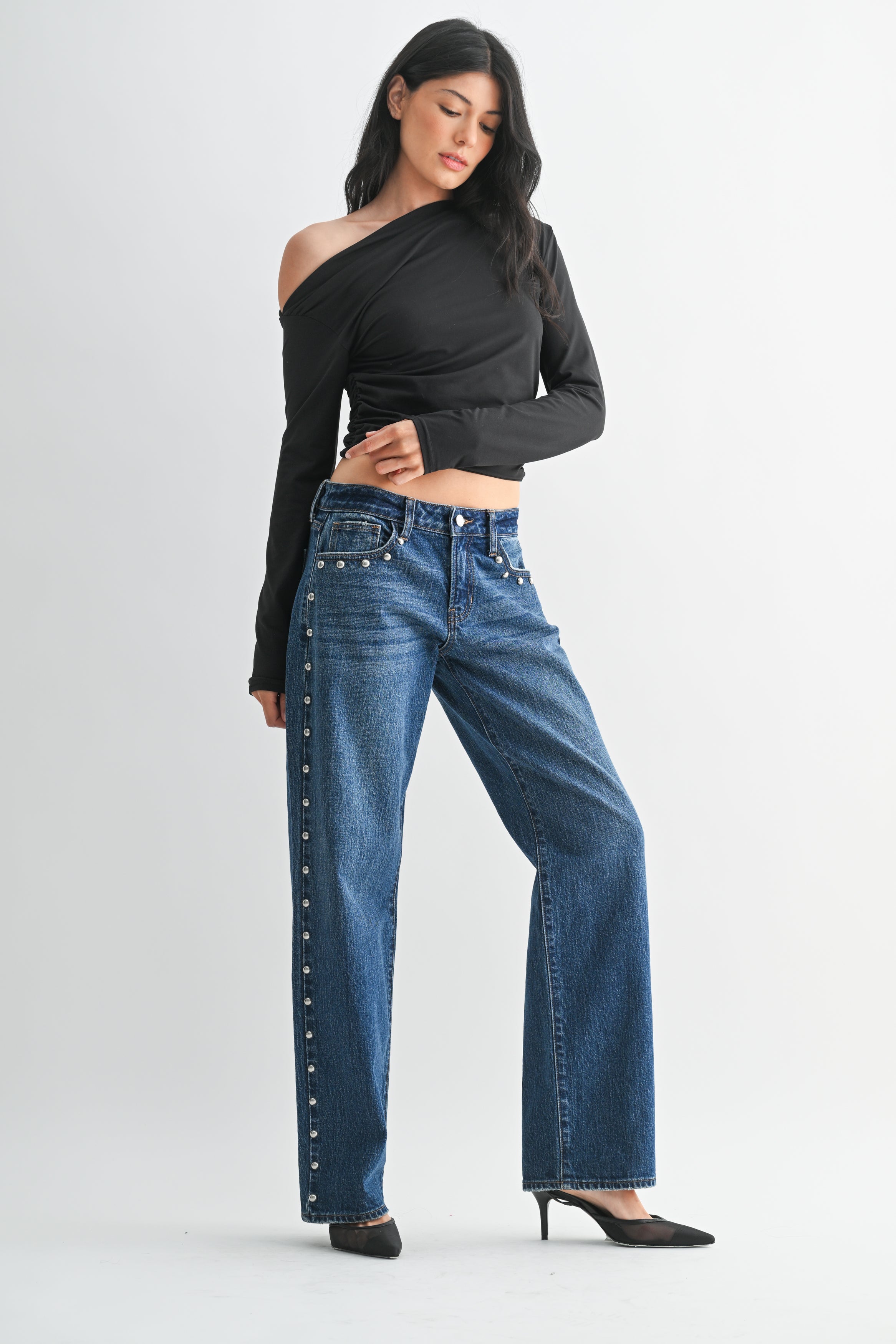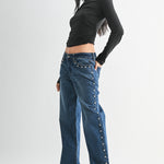 Just Black - Low Rise Studded Baggy Jean