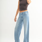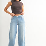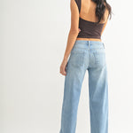 Sitting low on the hips, this jean channels a relaxed vibe with a perfectly faded light wash and a straight-leg silhouette that strikes the ideal balance between structure and slouch, finished with a full longer length for an elongated look!
