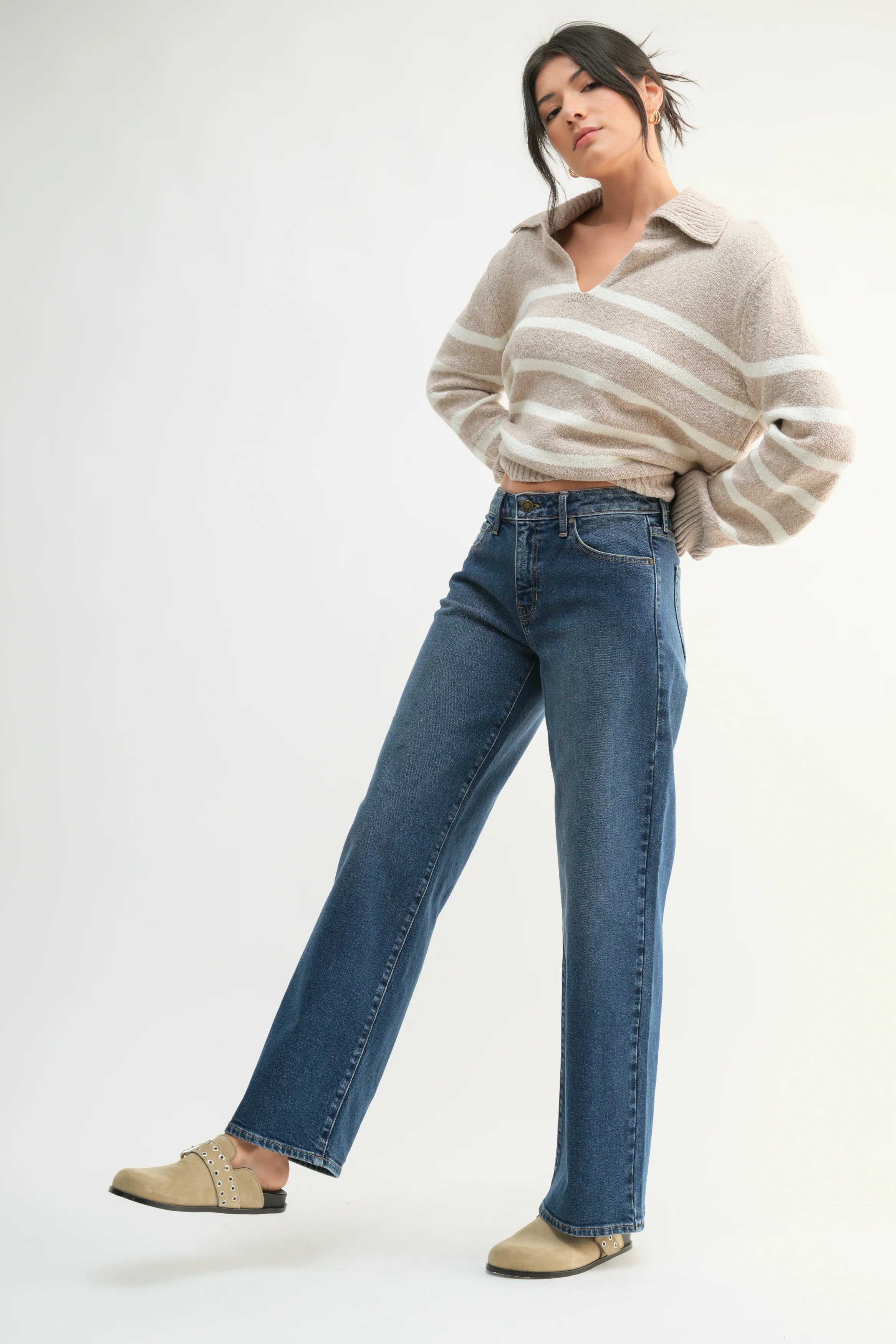 Your new favorite jeans are here — the perfect balance of comfort, style, and versatility. Sitting comfortably at the natural waist, the mid-rise fit creates a flattering, elongated silhouette. As the leg flares out, you get a fresh, trend-forward wide-leg silhouette that’s effortlessly cool and totally on-point!