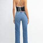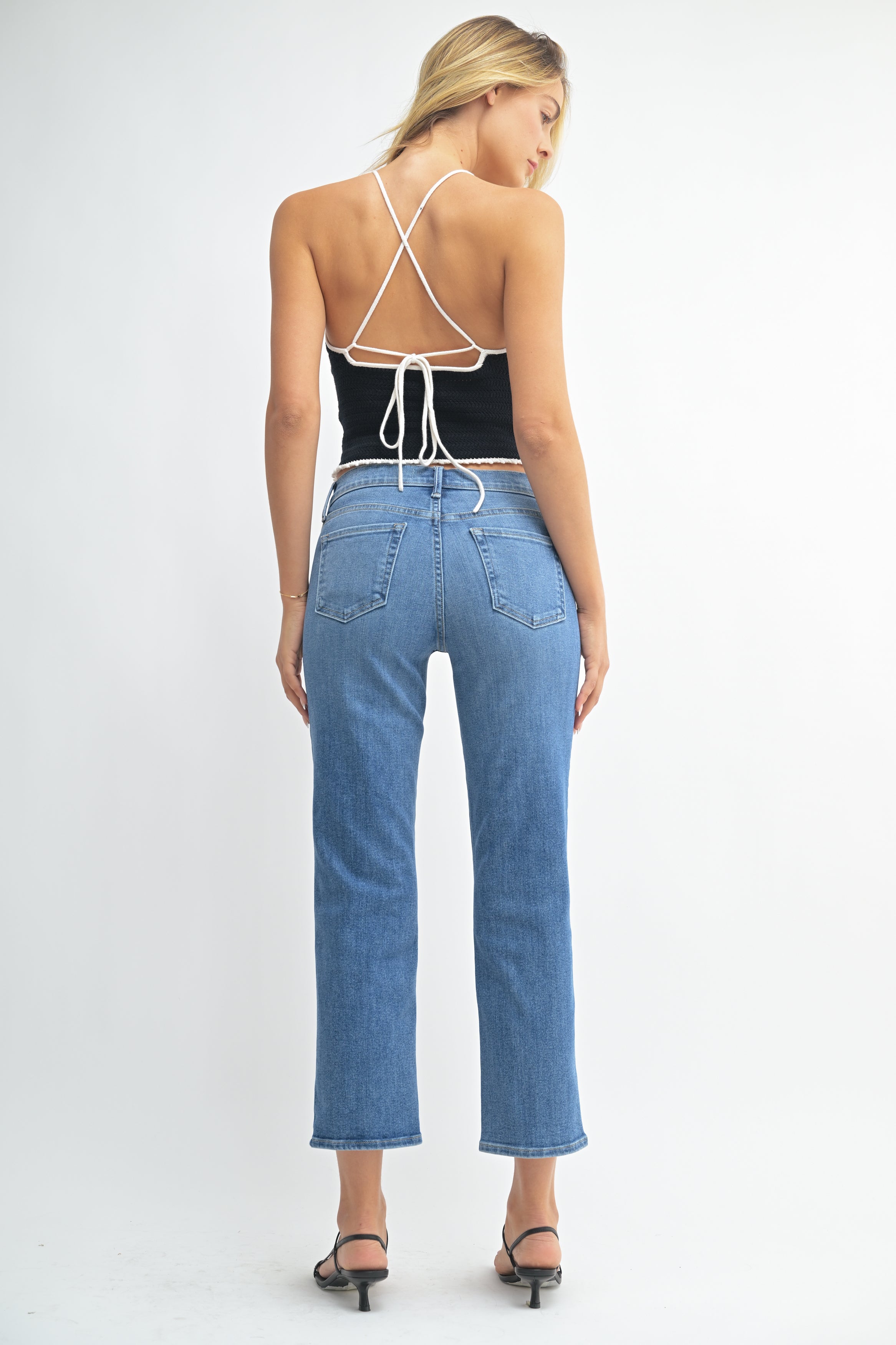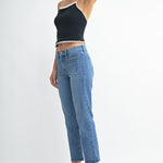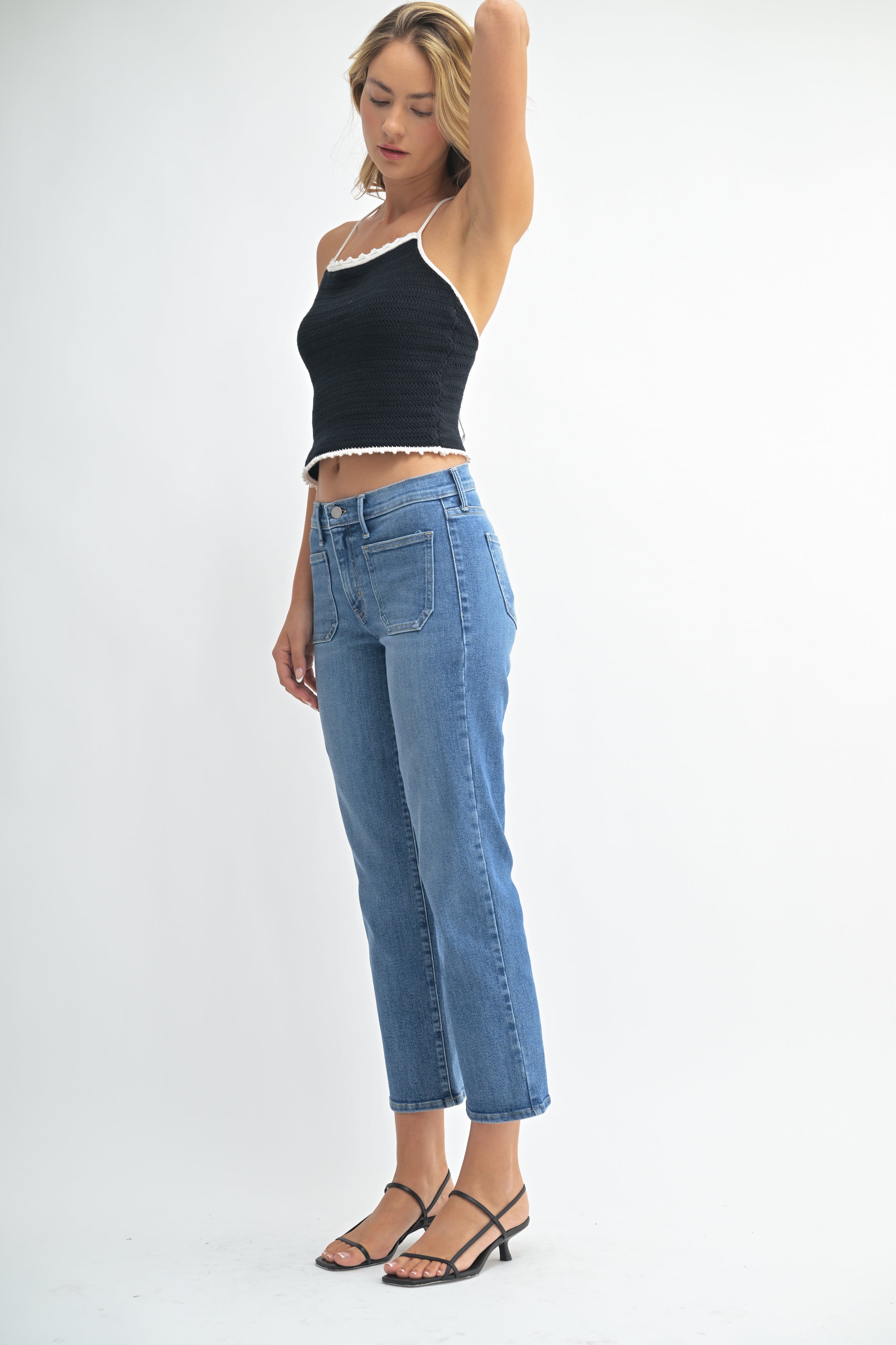 Tailored for petite frames, this jean features a modern low-rise waist for a contemporary silhouette, while the straight leg offers a clean, refined finish. Front patch pockets add a touch of utility-inspired style, while two versatile washes ensure easy wear from day to evening!