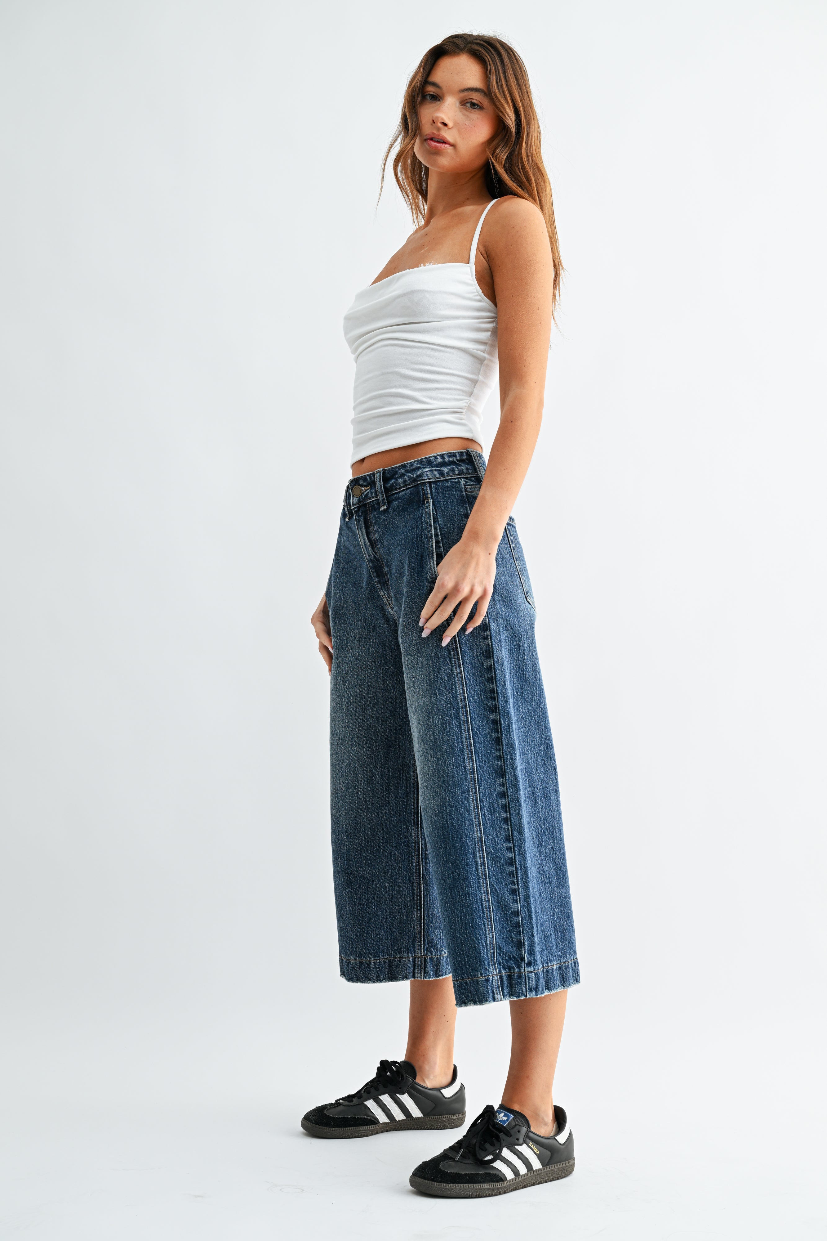 Sleek and versatile, these side seam wide capris deliver effortless style for any occasion. The flattering wide leg silhouette elongates your frame while the classic black hue pairs with everything in your wardrobe. Perfect for casual outings or dressed-up evenings, this wardrobe essential combines comfort with contemporary design!