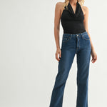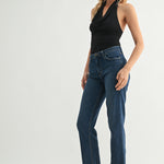These jeans blend '90s style with ultimate comfort, featuring soft fabric that contours to your body and a mid-rise waist for a flattering, versatile fit. With a classic straight-leg cut, these jeans provide a relaxed yet defined silhouette, perfect for everyday wear.
