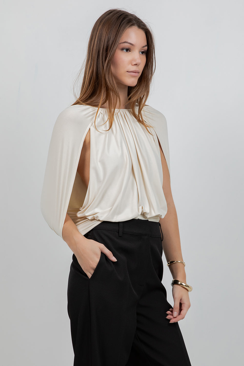 Knitted Sleeveless Cape Bodice Bodysuit