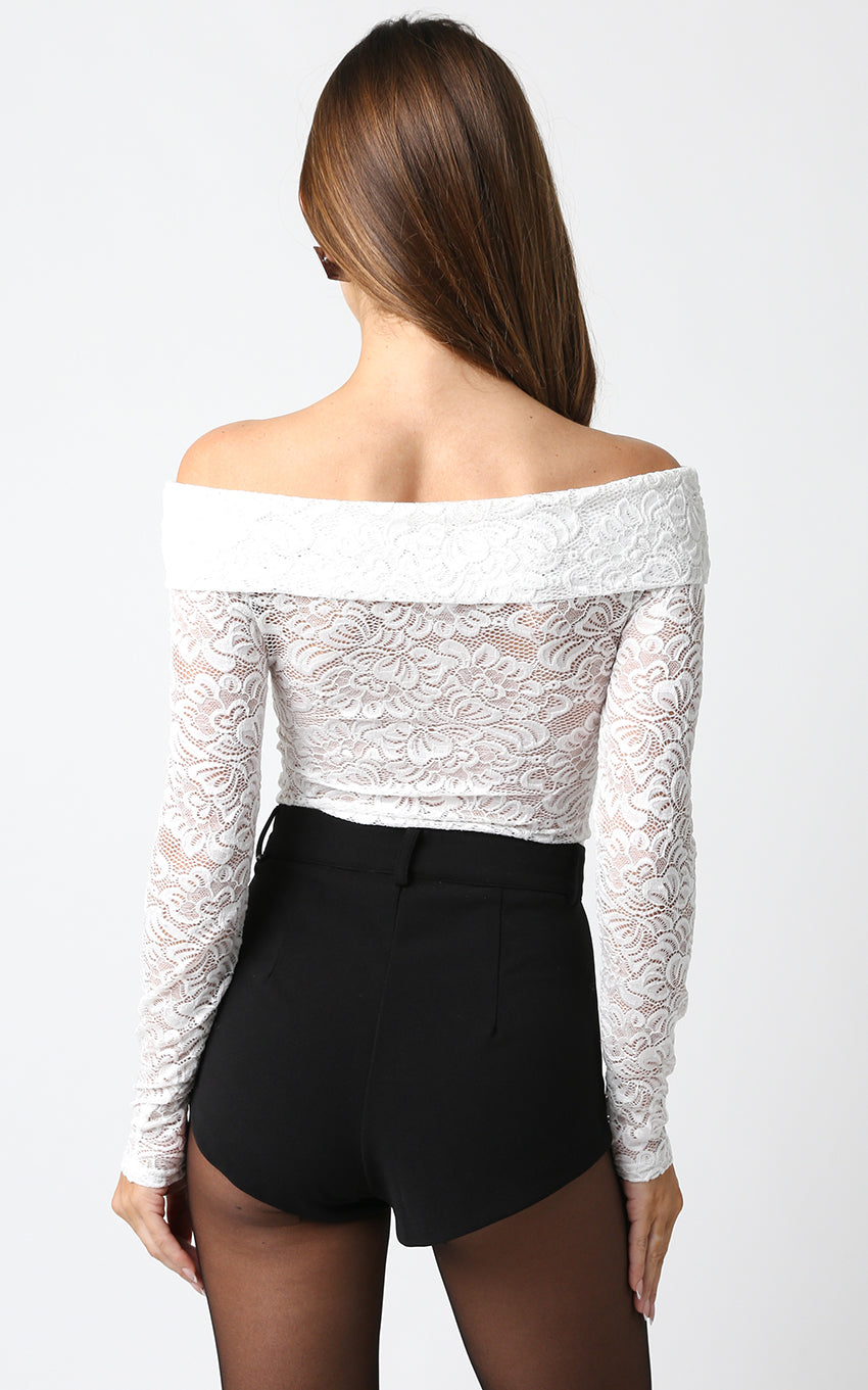 Show off your playful side with this Lace Off Shoulder Top. Perfect for a night out, this top will make you feel flirty and fun with its unique off shoulder design and delicate lace detailing. Don't miss out on this trendy piece for your wardrobe!