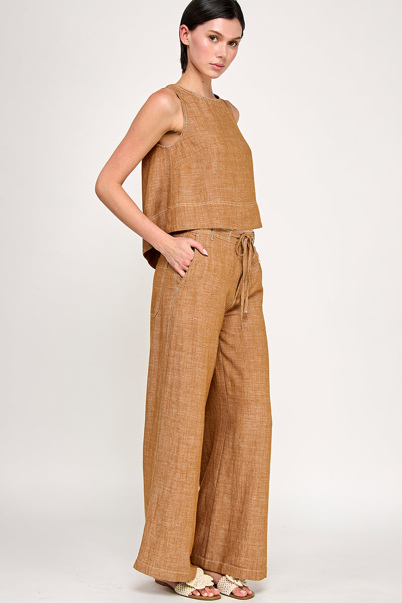 Discover the Linen Stitch Wide Pant, offering breathable comfort and a flattering wide-leg silhouette. Made from lightweight linen, these pants keep you cool and stylish all day long. Complete your outfit effortlessly by pairing them with the matching linen top for a refined and fashionable look that’s perfect for any occasion!