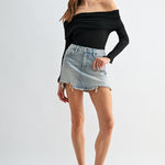 Mica - High Rise Mini Skirt With Ripped Hem