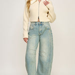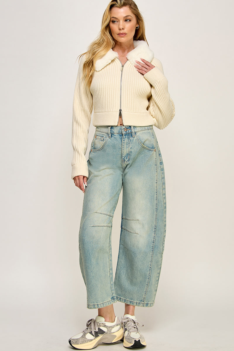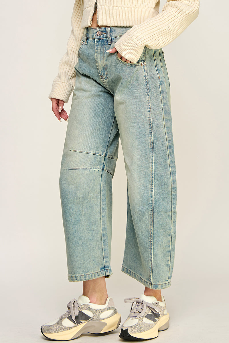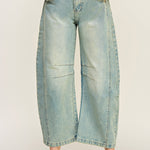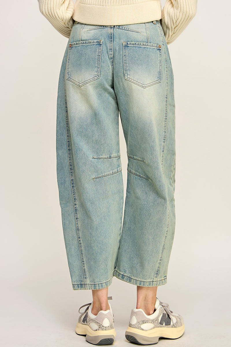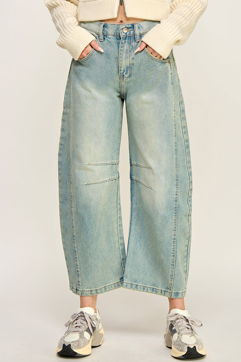 The Mid Rise Barrel Jean is crafted to provide a comfortable and stylish fit. With a mid-rise design, it offers a flattering silhouette while the barrel leg design adds a touch of trendiness. Perfect for everyday wear, these jeans are a must-have for your casual wardrobe.