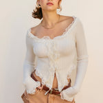Elevate your style with this Off Shoulder Top featuring a delicate lace insert. Its flattering neckline highlights your shoulders while the lace detail adds a touch of elegance and femininity. Perfect for both casual outings and dressier occasions, this top combines comfort with chic sophistication to make you stand out effortlessly!