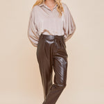 One Pintuck Leather Pant