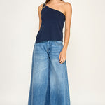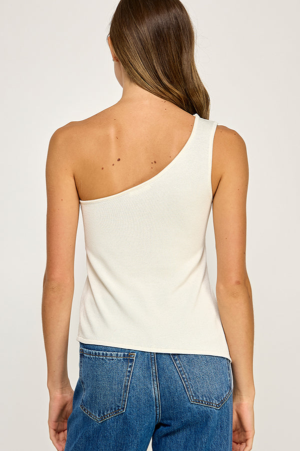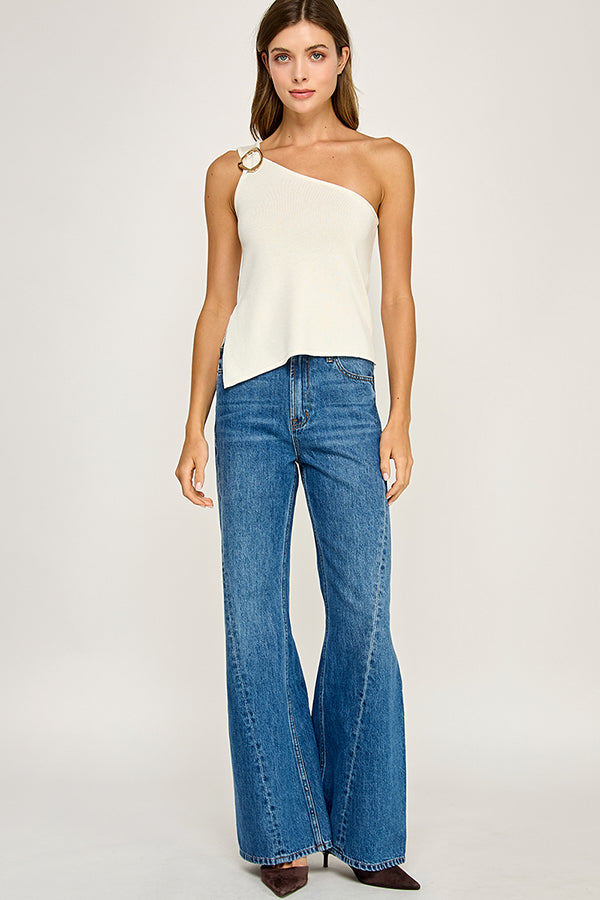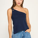 Make a bold statement with this one-shoulder knit top featuring a sleek buckle accent. The asymmetrical design and soft fabric create an instantly polished look that works for any occasion. Versatile, flattering, and undeniably chic—this is the piece you'll reach for again and again!