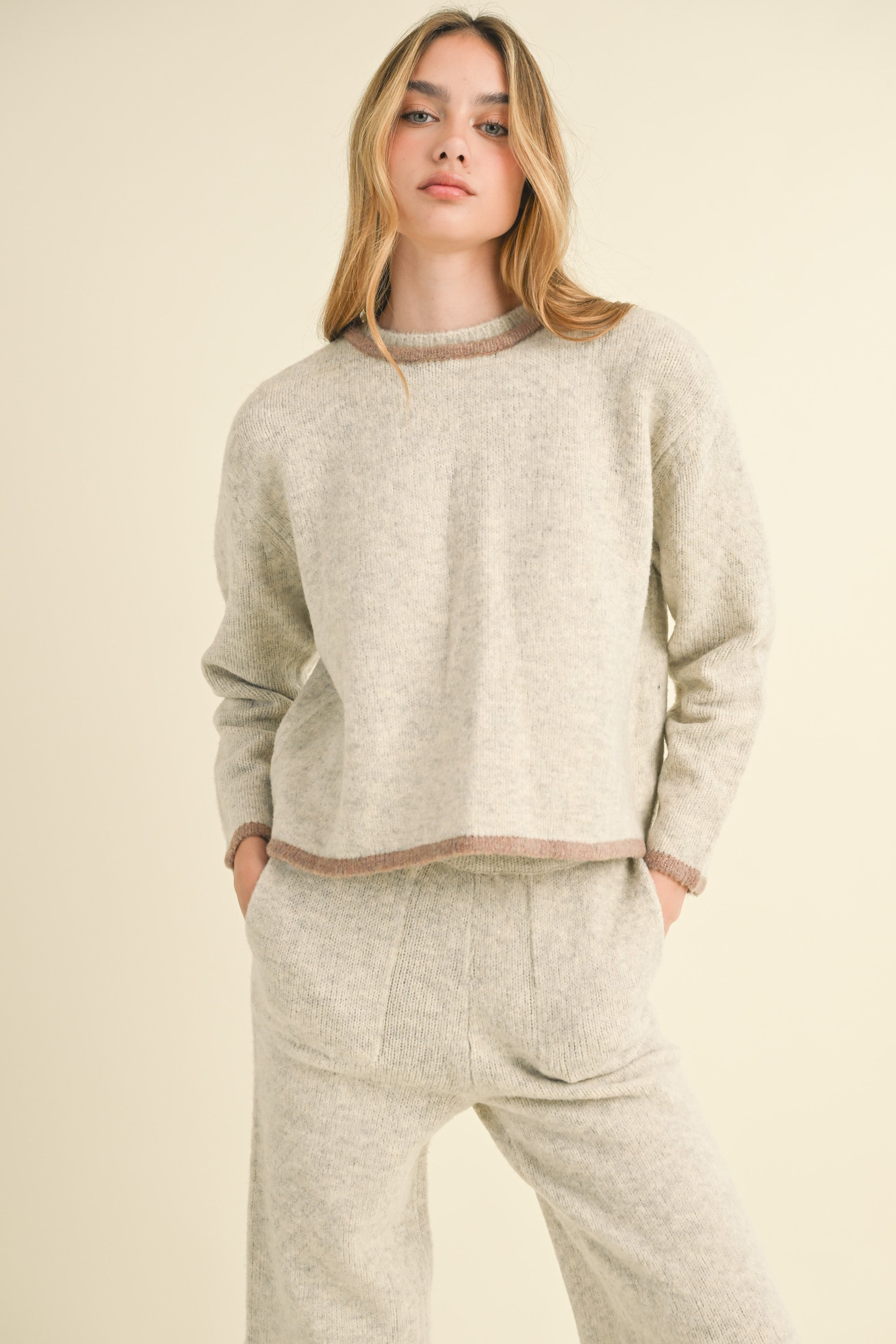 This Open Detail Sweater Top is your perfect lounge companion, complete with matching sweatpants. Stay cozy and stylish in this top that keeps you looking and feeling good. (Bonus: You can also mix and match with other bottoms for a versatile look!)