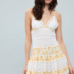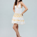 Delicate pale florals meet sophisticated embossed lace in this charming mini dress. The intricate floral detailing creates an elegant, textured look perfect for spring events, date nights, or elevated casual wear!