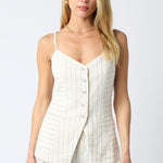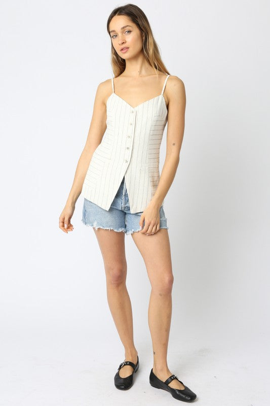 Elevate your wardrobe with the Pinstripe Button Vest, a sleek layering piece that adds polished style to any outfit. Its classic pinstripe pattern and tailored fit create a sharp, sophisticated look perfect for both professional settings and casual chic. Button closure ensures a secure fit while enhancing the vest’s refined silhouette. Pair it with your favorite blouse or dress shirt to instantly boost your ensemble with timeless elegance.
