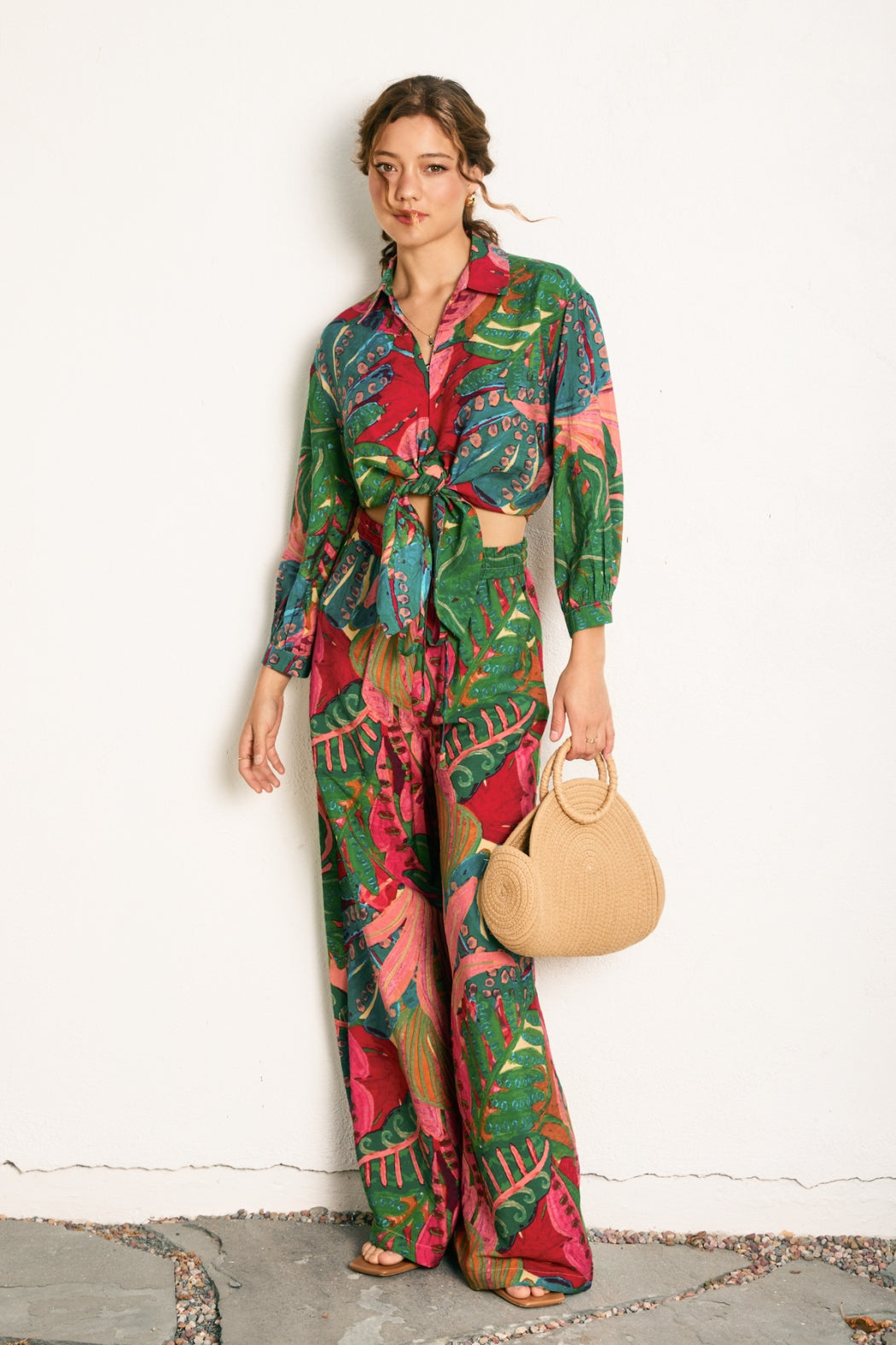 Elevate your vacation wardrobe with this striking Printed Front Crop Top. The bold front print makes an instant impact, while pairing it with our matching pants creates a coordinated, head-turning ensemble. Perfect for travelers who refuse to compromise on style!