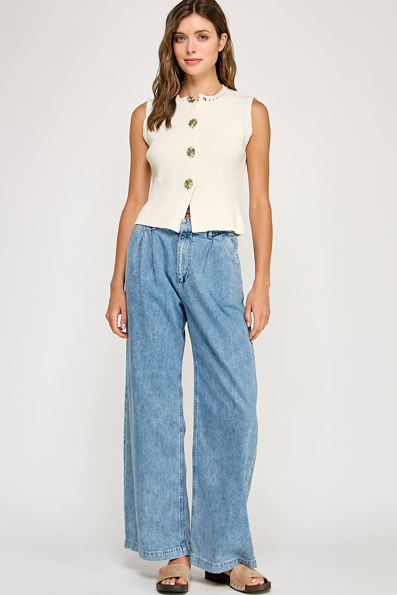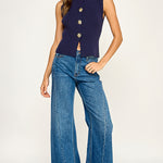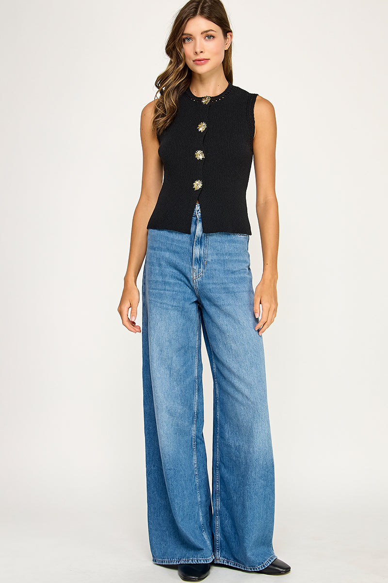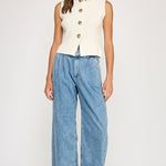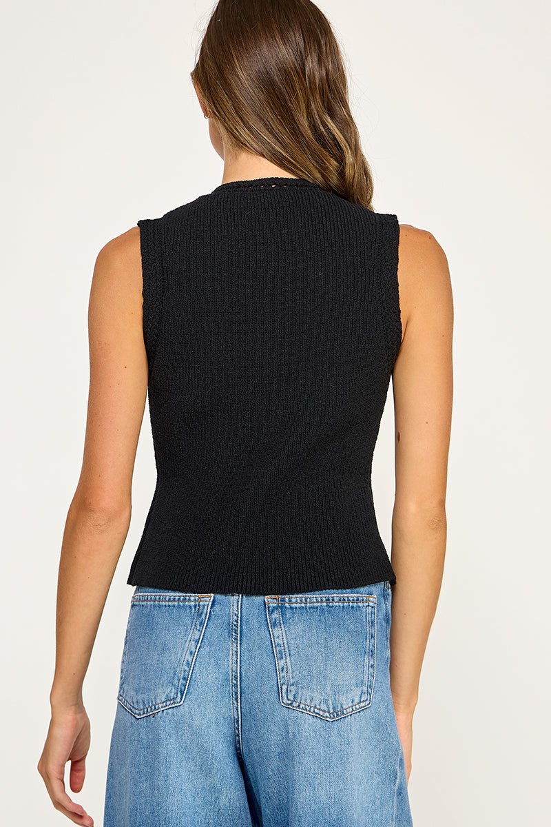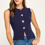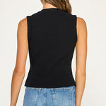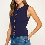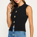 Elevate your wardrobe with this Rib Knit Sleeveless Cardigan, perfectly blending comfort and style. Whether paired with a blouse for work or your favorite tee for casual outings, this top delivers effortless elegance. A staple piece that enhances any outfit with relaxed sophistication, this is a must have transitional piece!