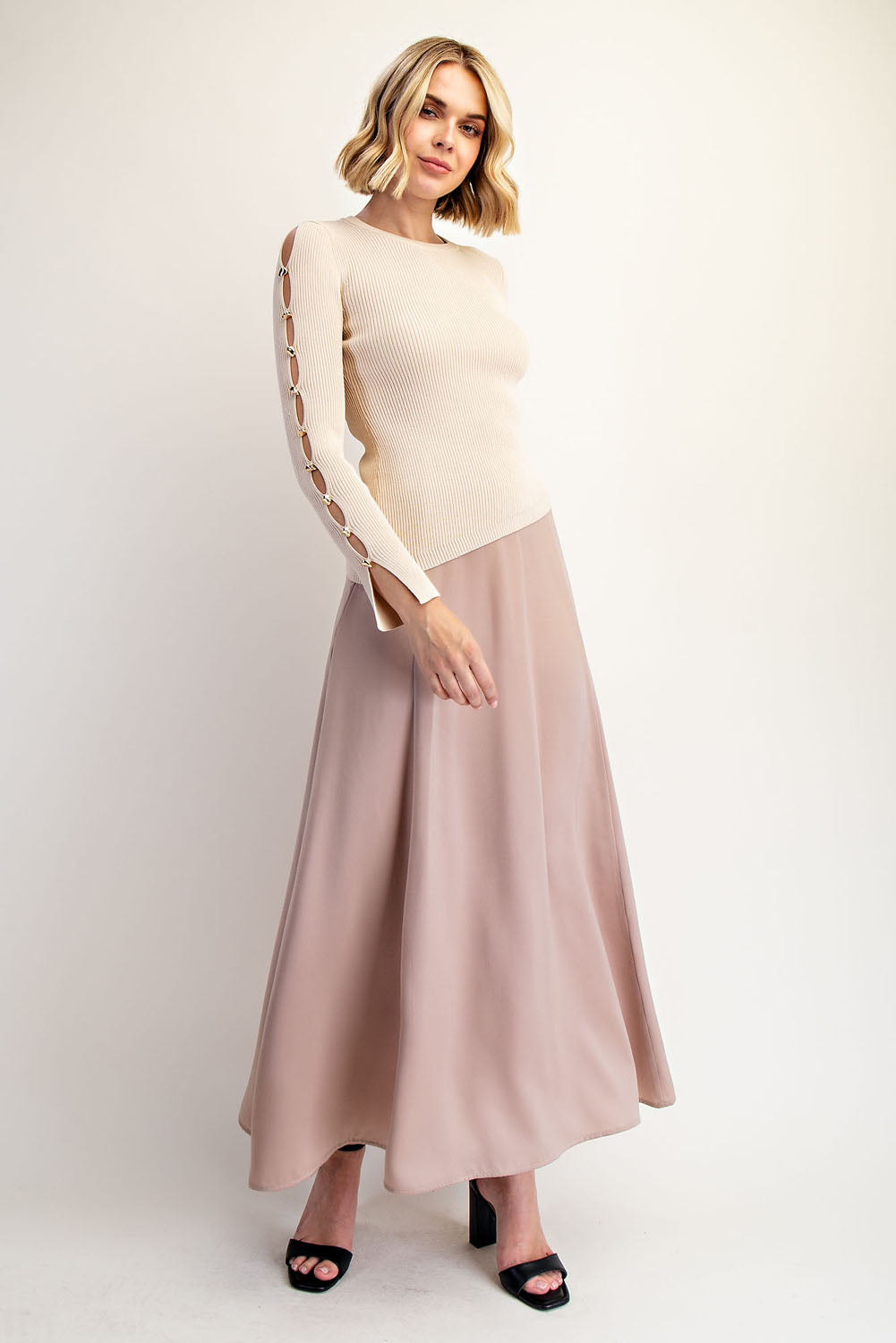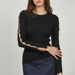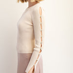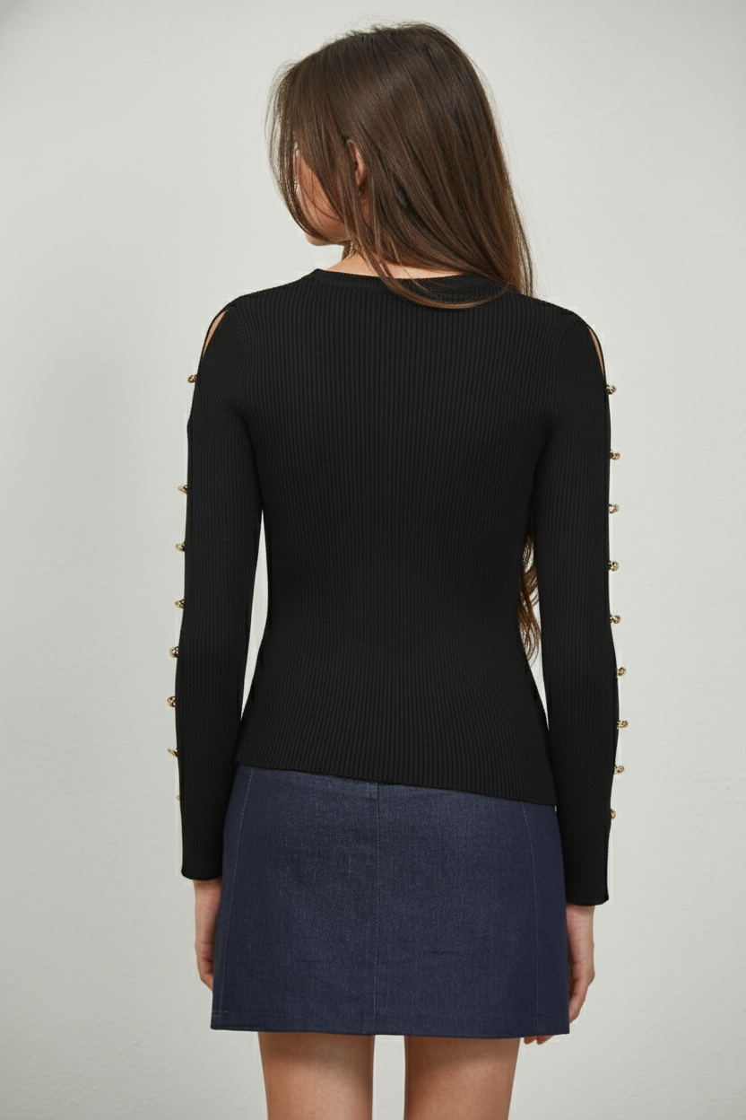 Elevate your everyday style with this ribbed sweater featuring distinctive slits along the sleeves—a modern twist that adds edge and visual interest. The textured ribbed knit provides a flattering fit while the strategic sleeve openings offer a contemporary look that works for both casual outings and layered styling. Versatile, on-trend, and effortlessly chic!