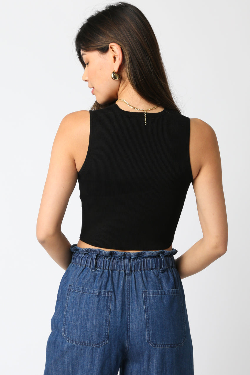Sleeveless Rib Knit Crop Top