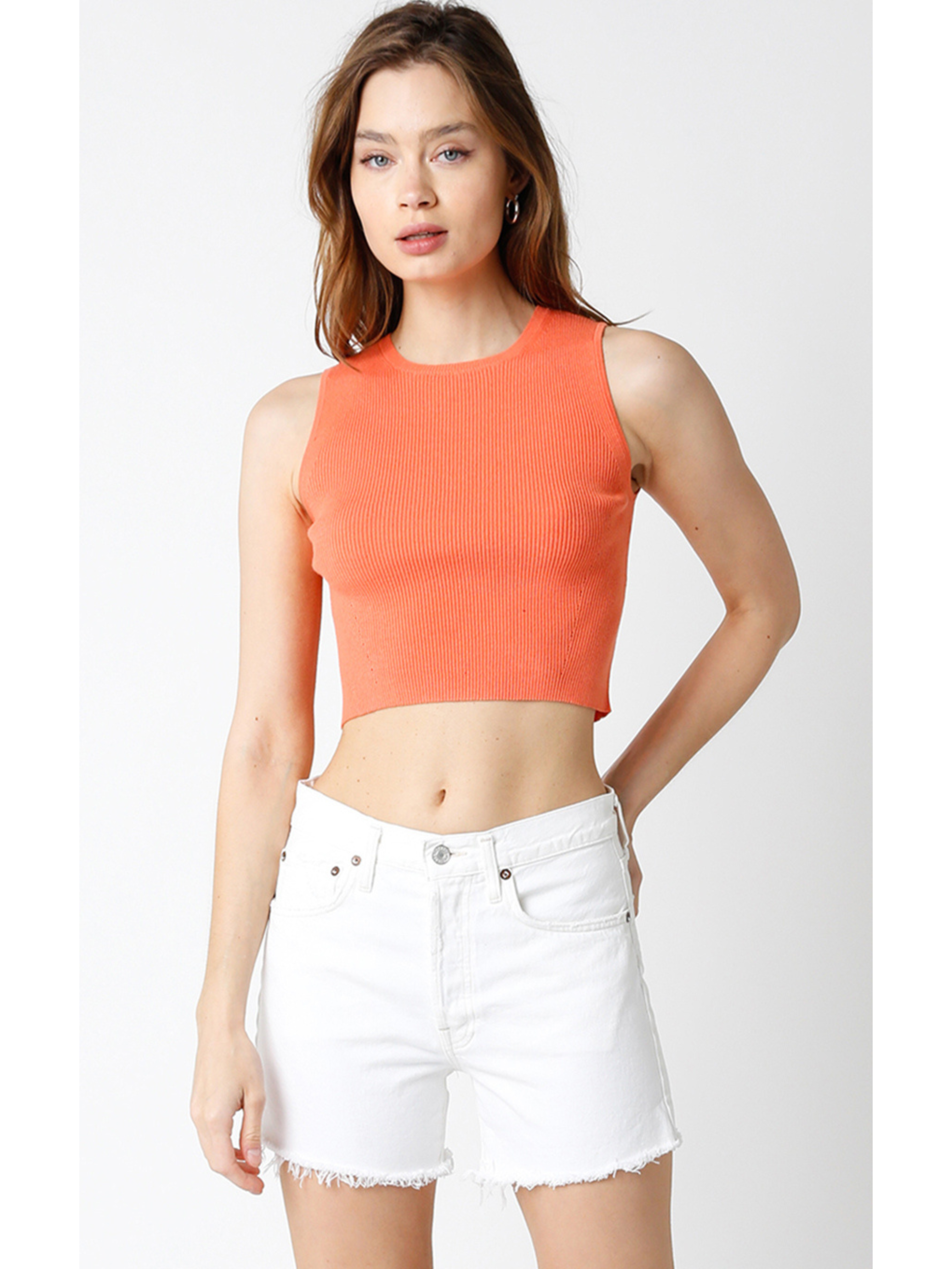 Discover the Sleeveless Rib Knit Crop Top, now back in stock and available in a fresh new color. Its soft ribbed fabric offers flattering stretch and breathable comfort, making it perfect for layering or wearing solo. The cropped fit highlights your waist, ideal for pairing with high-waisted jeans or skirts. Elevate your wardrobe with this versatile, stylish essential designed to keep you cool and confident all day.