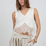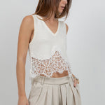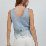 Elevate your layering game with this elegant sleeveless sweater featuring a flattering V-neckline and delicate lace detailing. Perfect on its own or paired with the matching cardigan for versatile styling that transitions seamlessly from day to night. A timeless piece that works harder in your wardrobe!