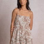 Escape to paradise in this stunning smocked leaf print dress. The flattering smocked bodice creates an effortless silhouette while the vibrant botanical print transports you straight to your dream destination. Lightweight and breathable, it's the ultimate vacation essential that takes you from beach days to sunset dinners with ease!