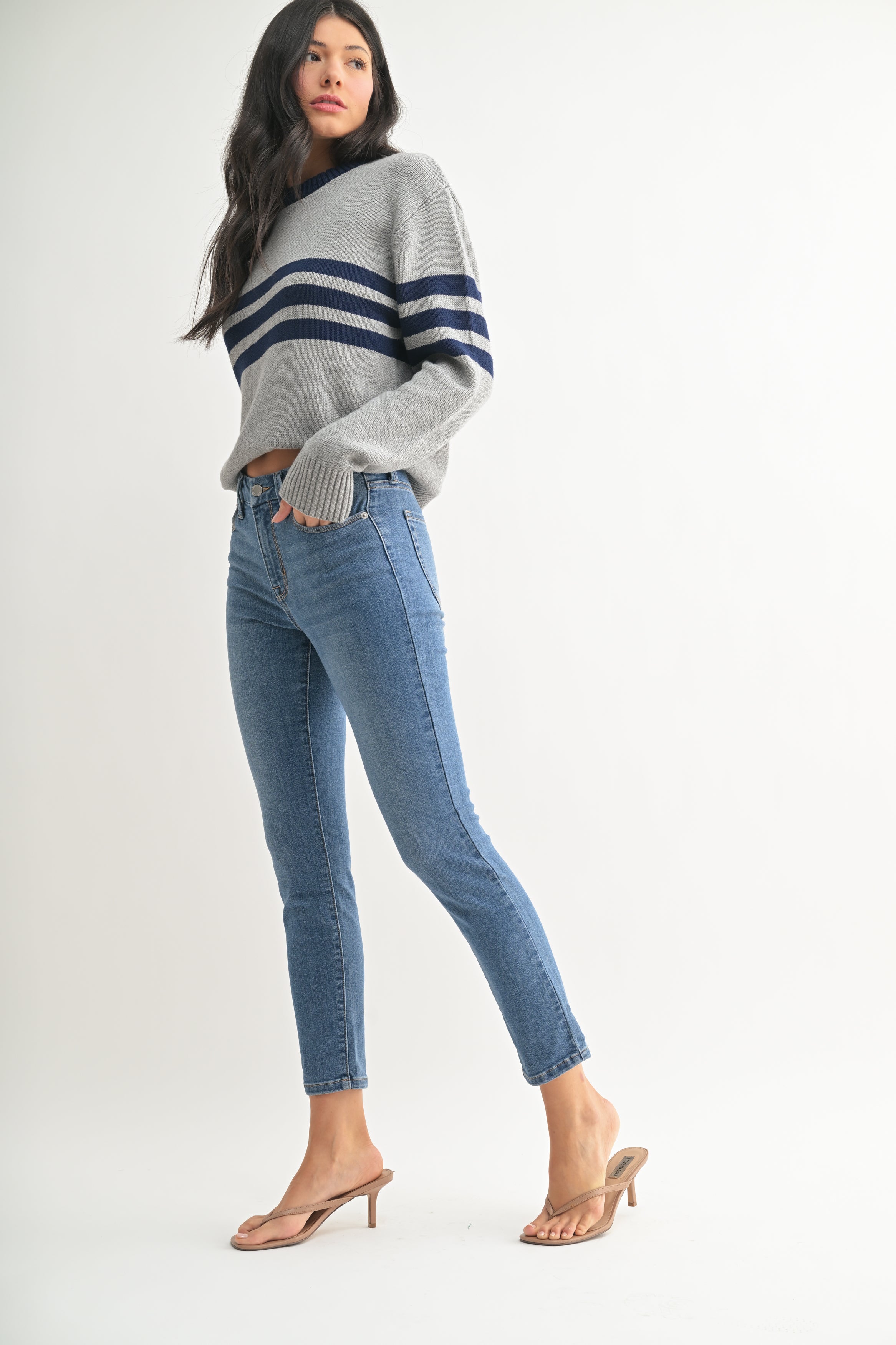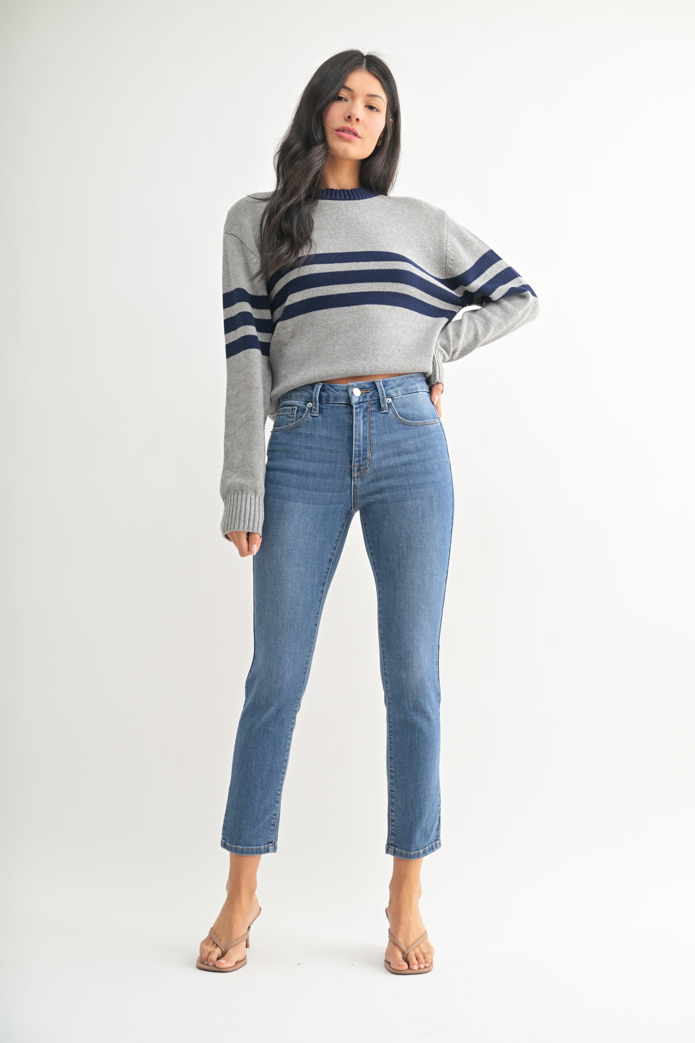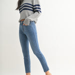 These soft and stretchy skinny jeans are designed for all-day comfort and a flattering fit. With a mid-rise waist, they sit perfectly for a balanced look that complements any outfit. Crafted from a premium blend of fabrics, they offer the perfect amount of stretch to move with you while maintaining their shape. Whether you're dressing them up or keeping it casual, these jeans are a must-have staple for effortless style.