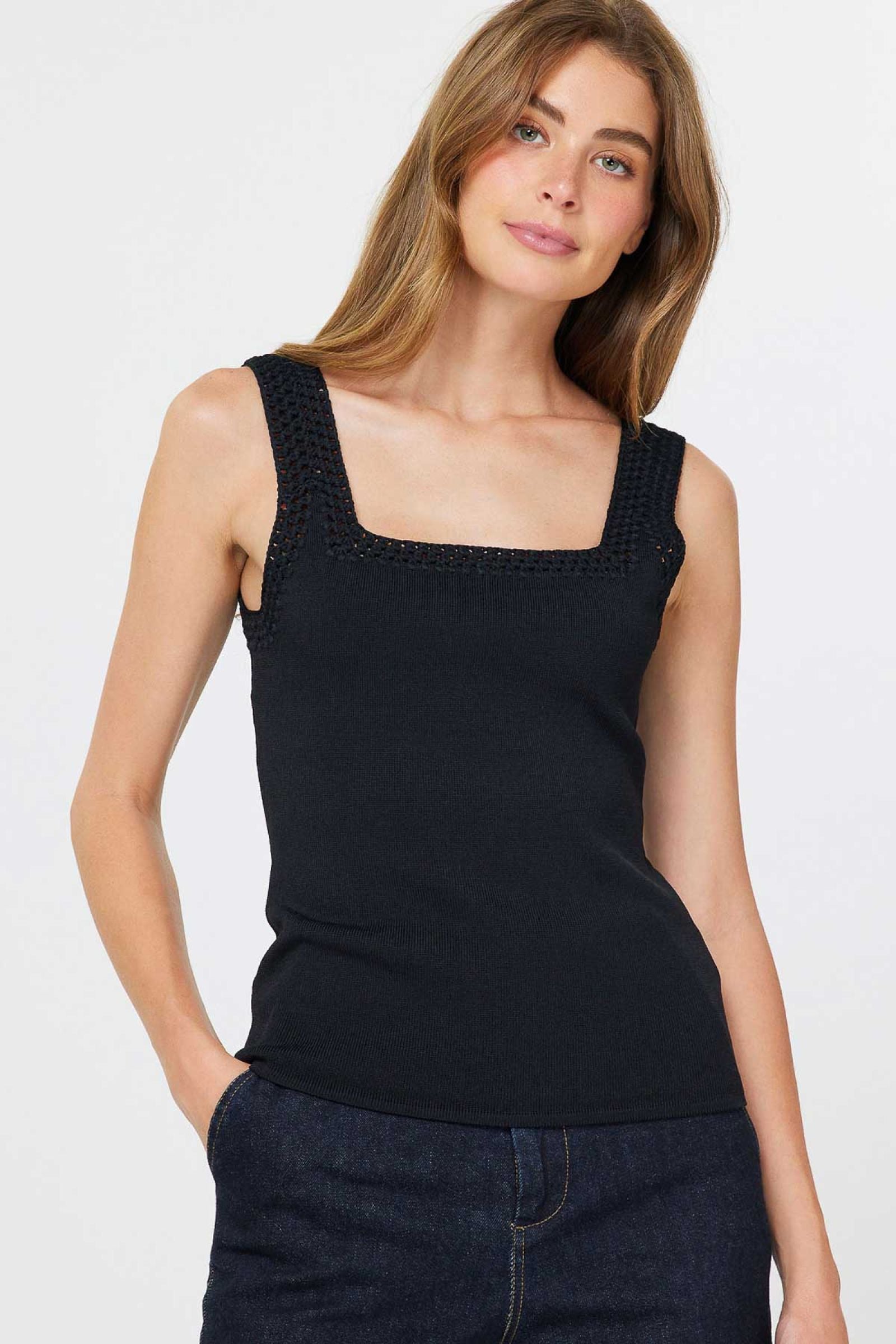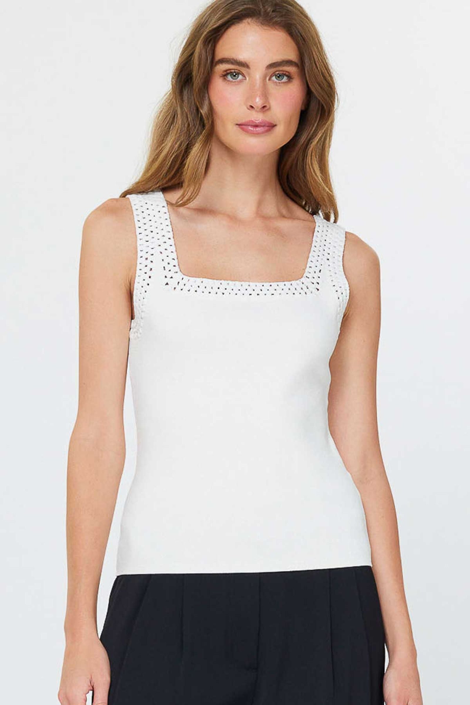 Square Neck Sweater Tank Top with Crochet Detail