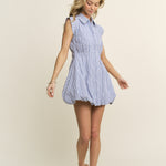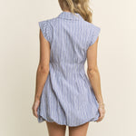 Make a statement in this eye-catching bubble mini dress featuring a bold striped collar and convenient zip-up front. The playful silhouette and mini length create an effortlessly chic look perfect for standing out. Dress it up or down for versatile style that turns heads!
